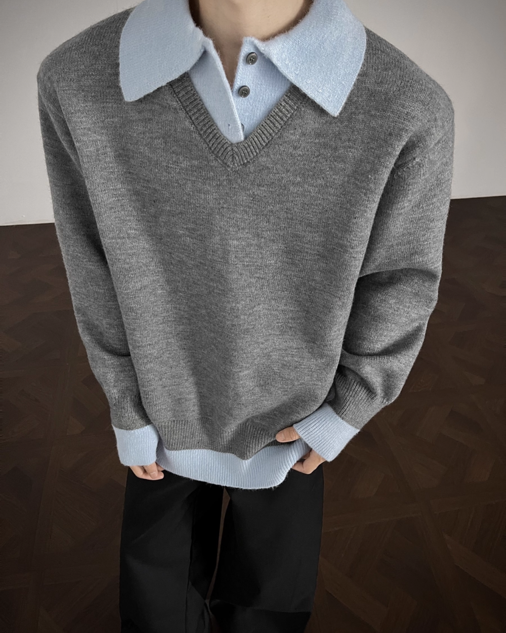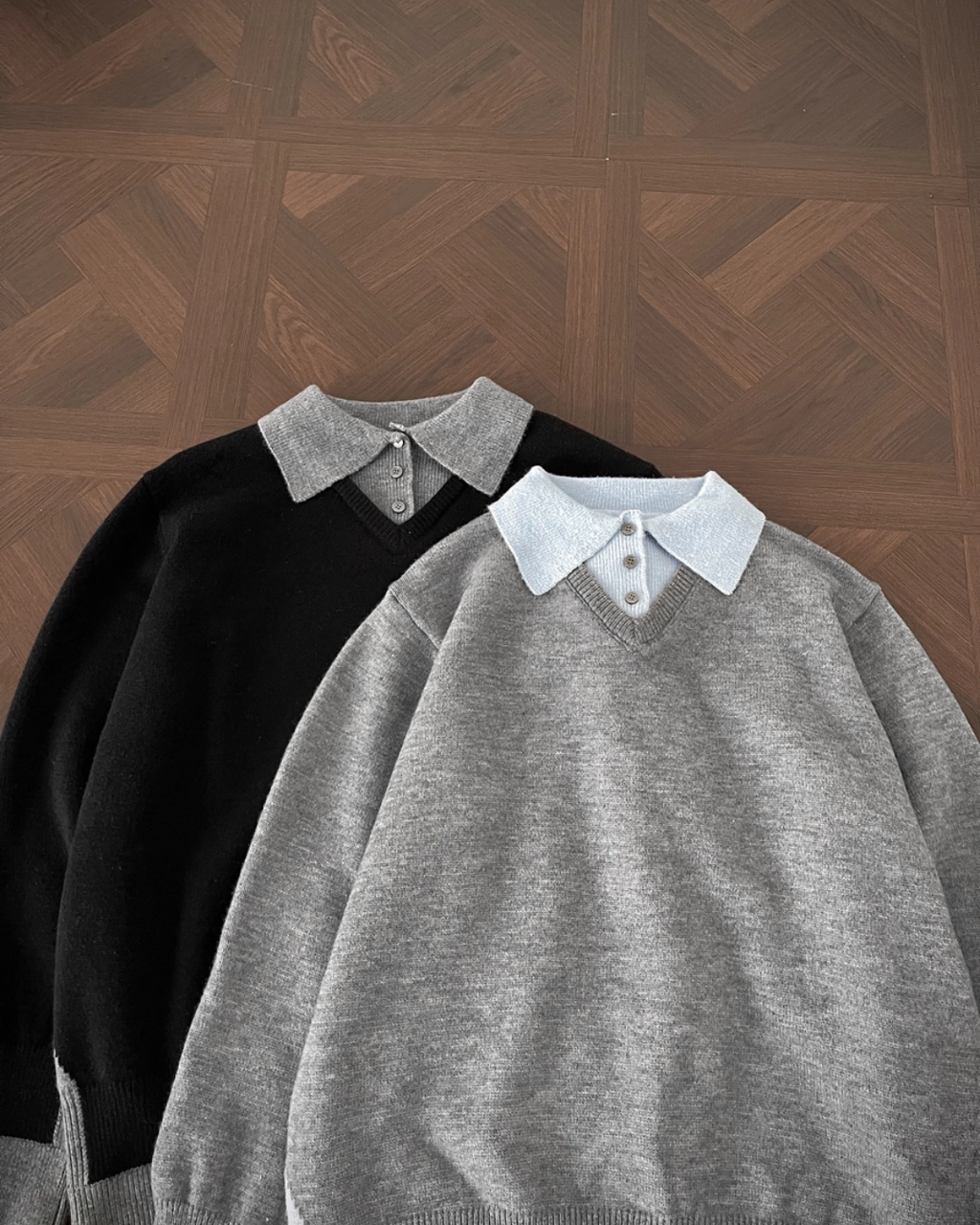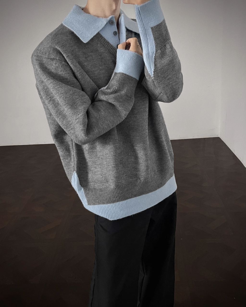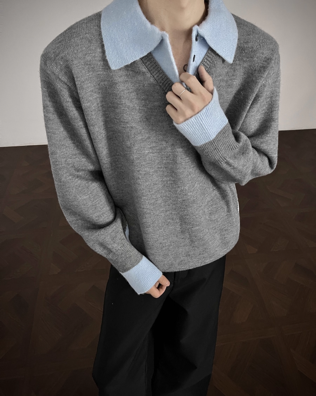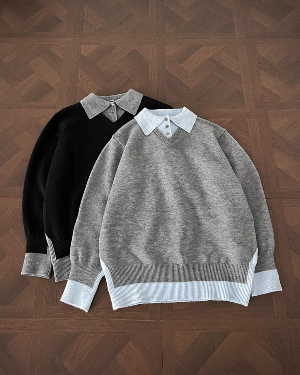 【1.2新作】バイカラーコリアンニットトップス mf3618