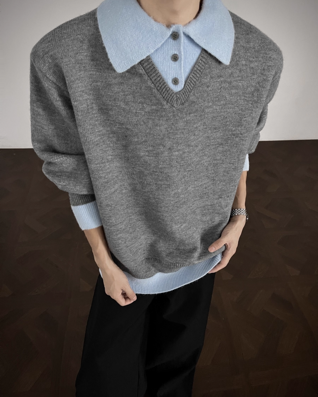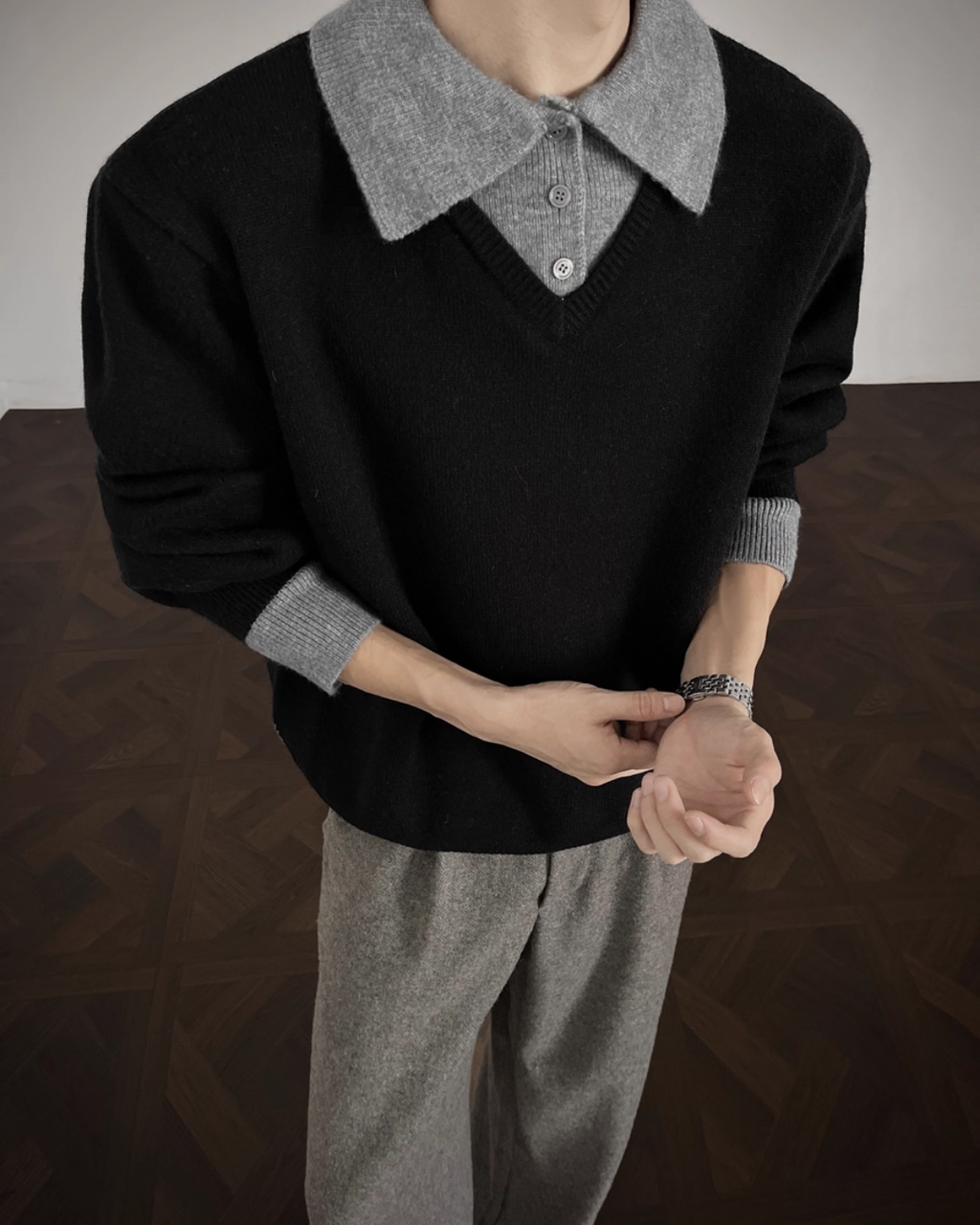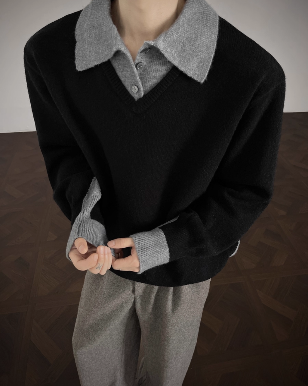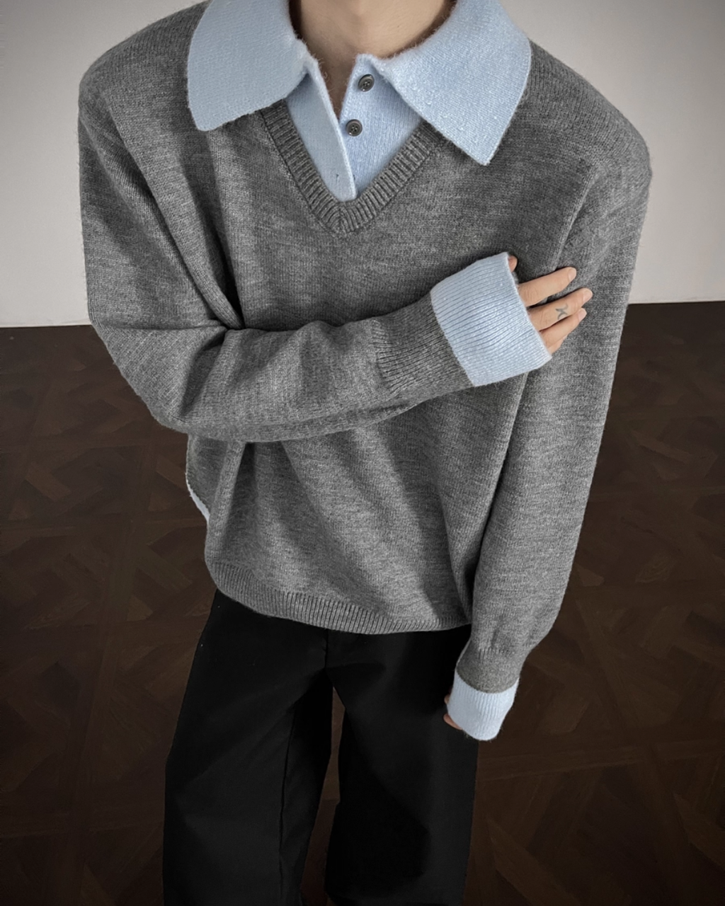 【1.2新作】バイカラーコリアンニットトップス mf3618