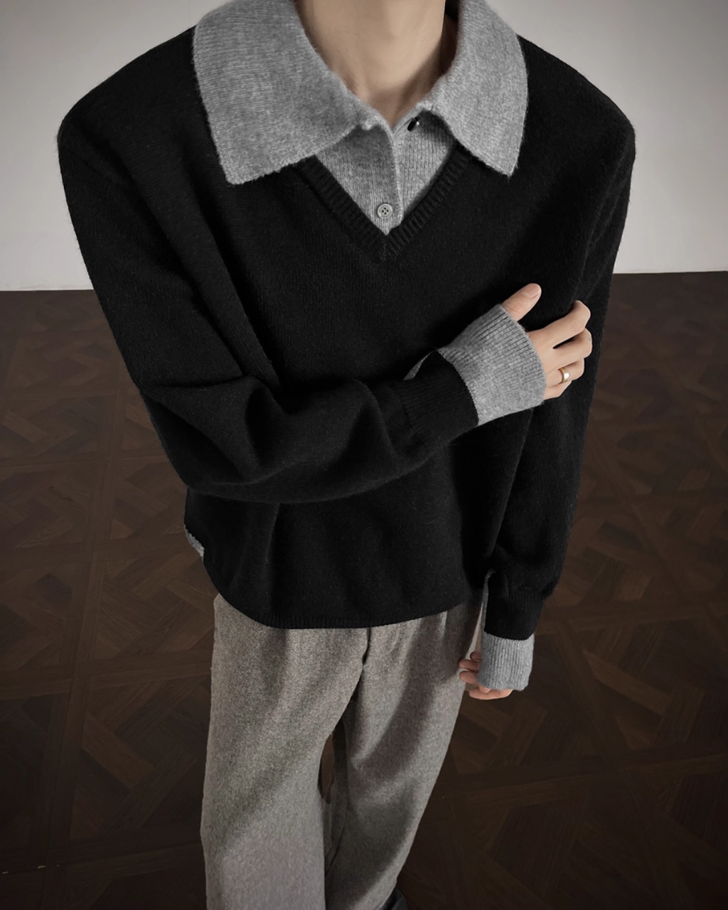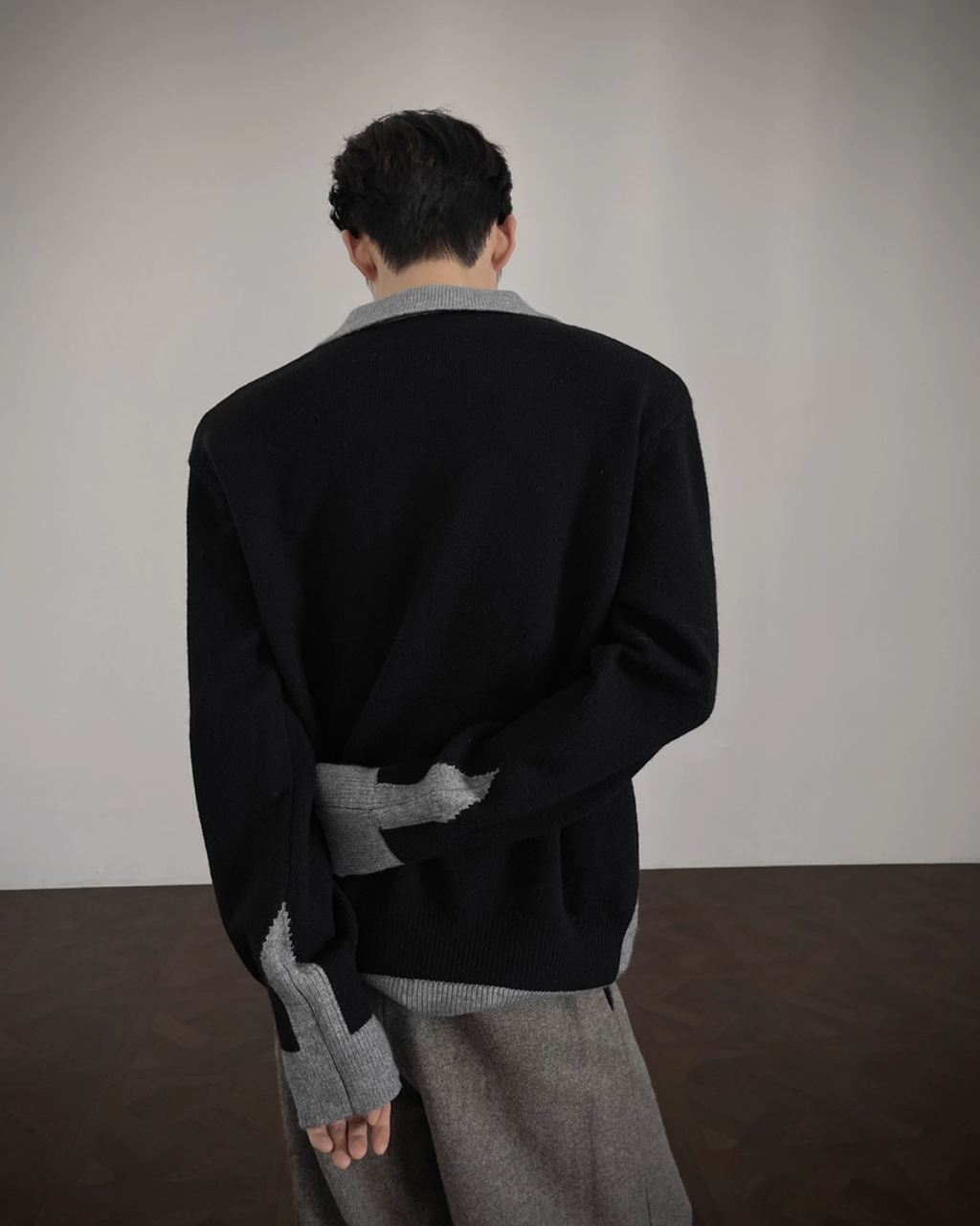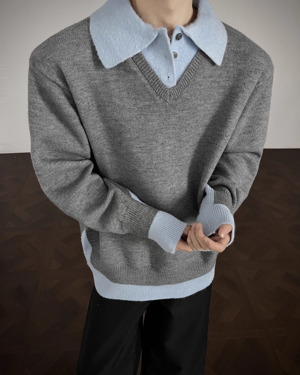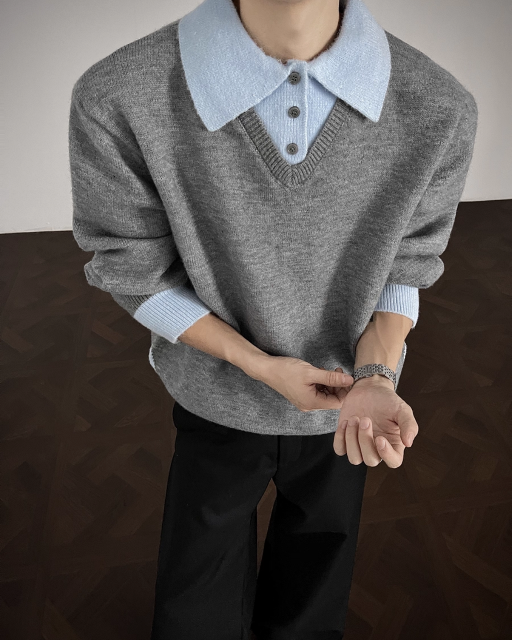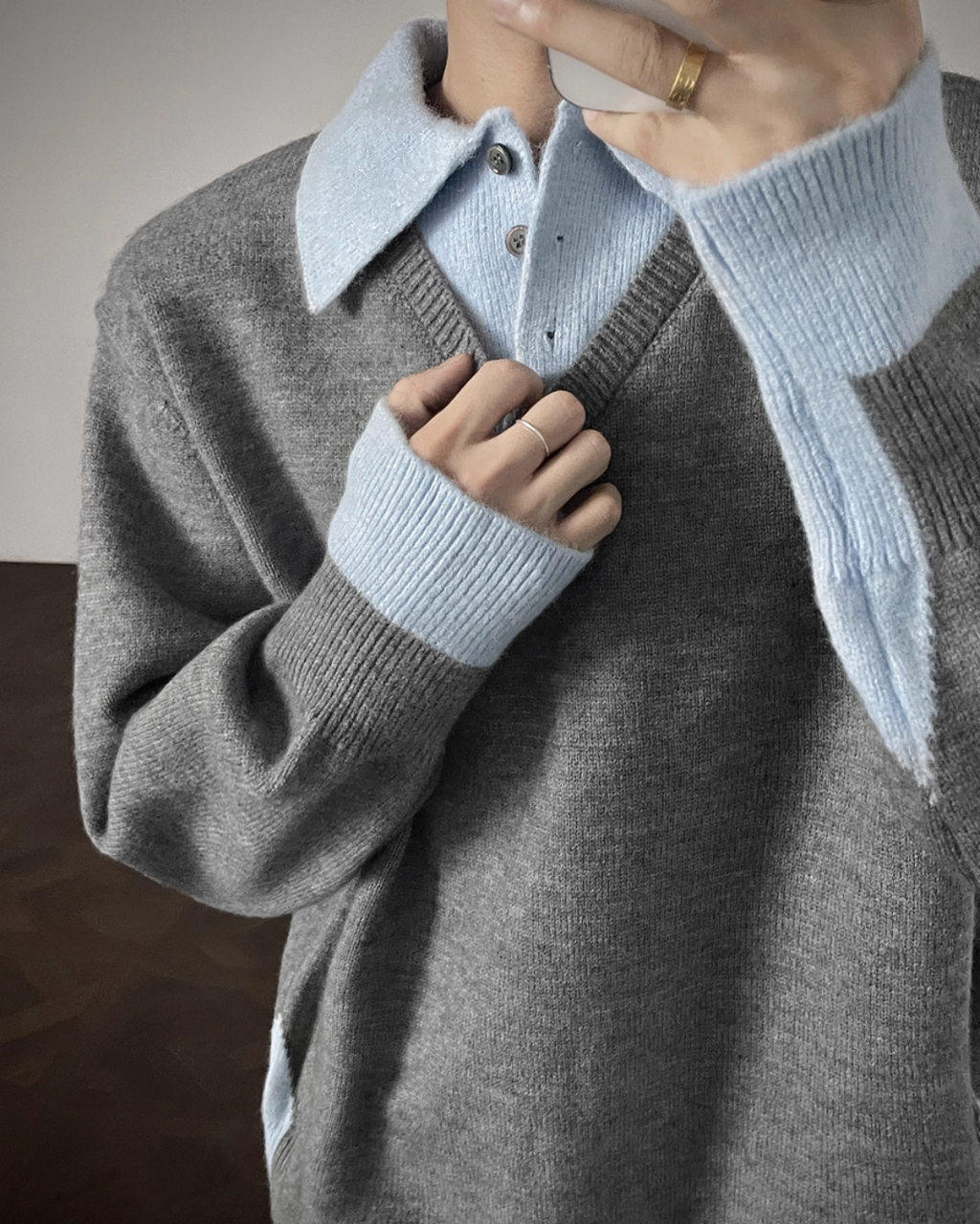 【1.2新作】バイカラーコリアンニットトップス mf3618