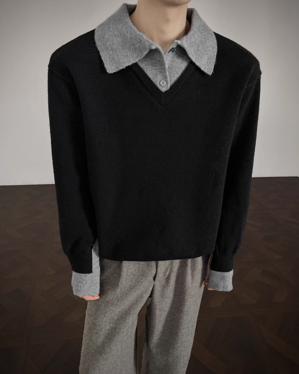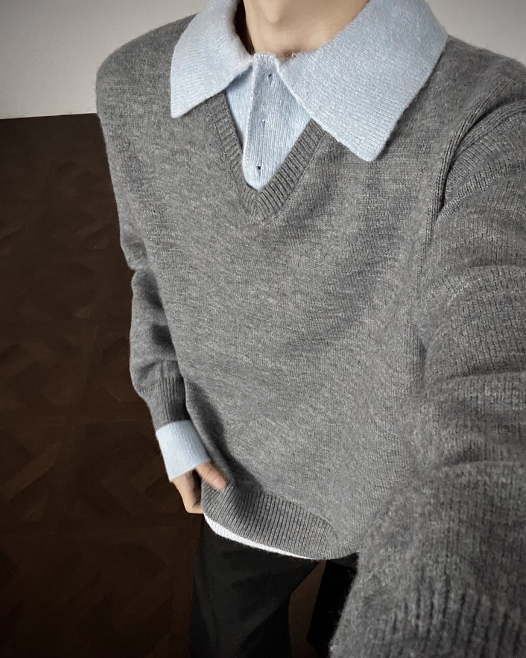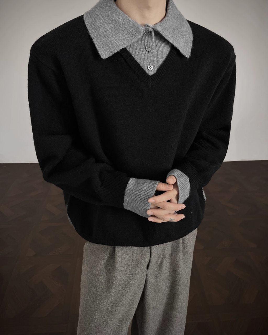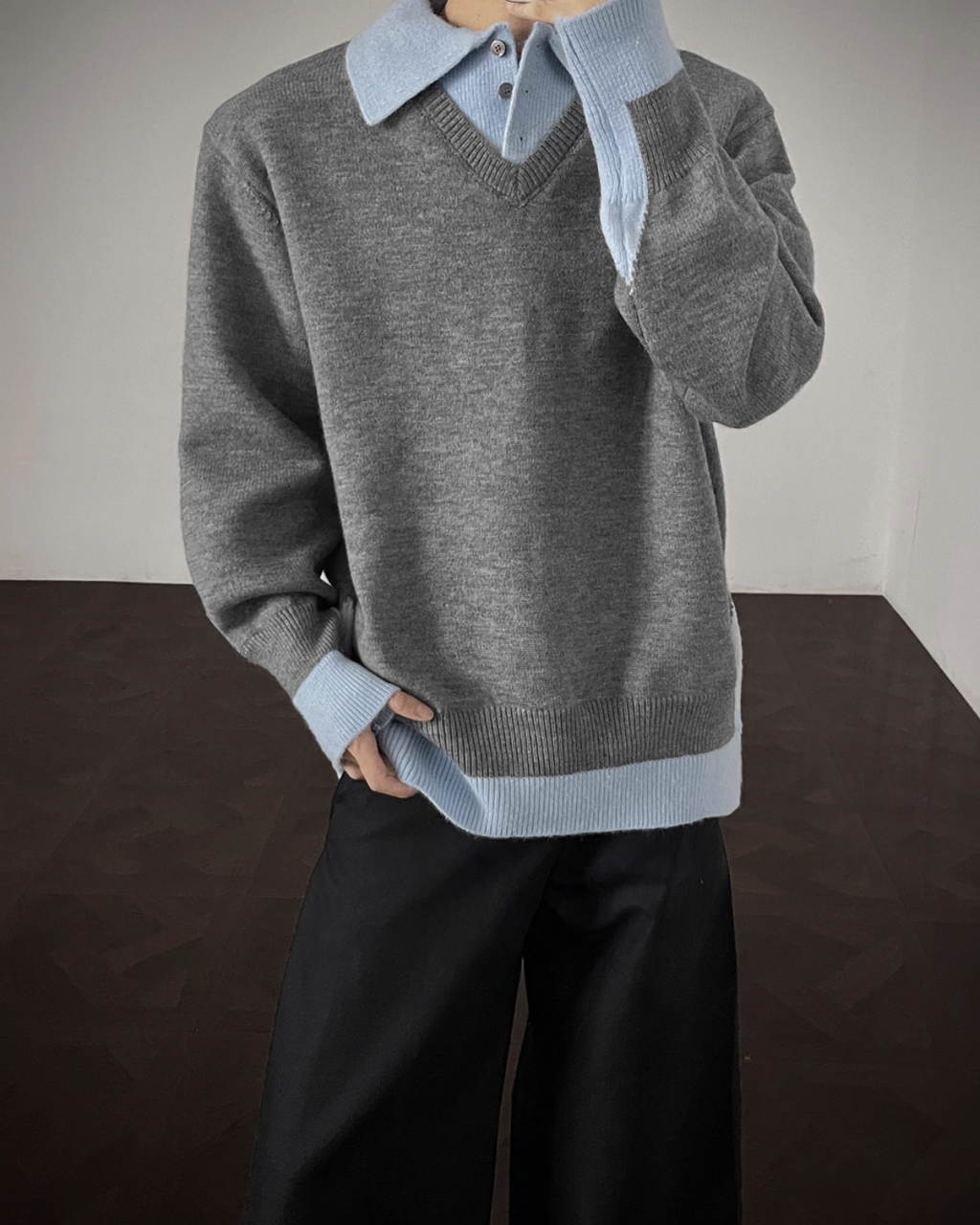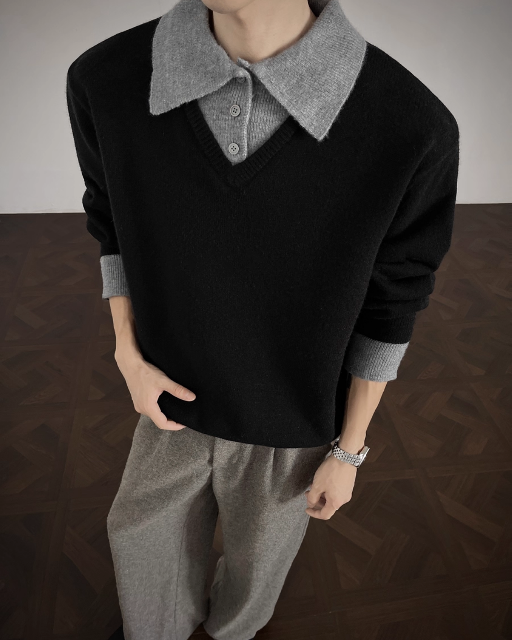 【1.2新作】バイカラーコリアンニットトップス mf3618