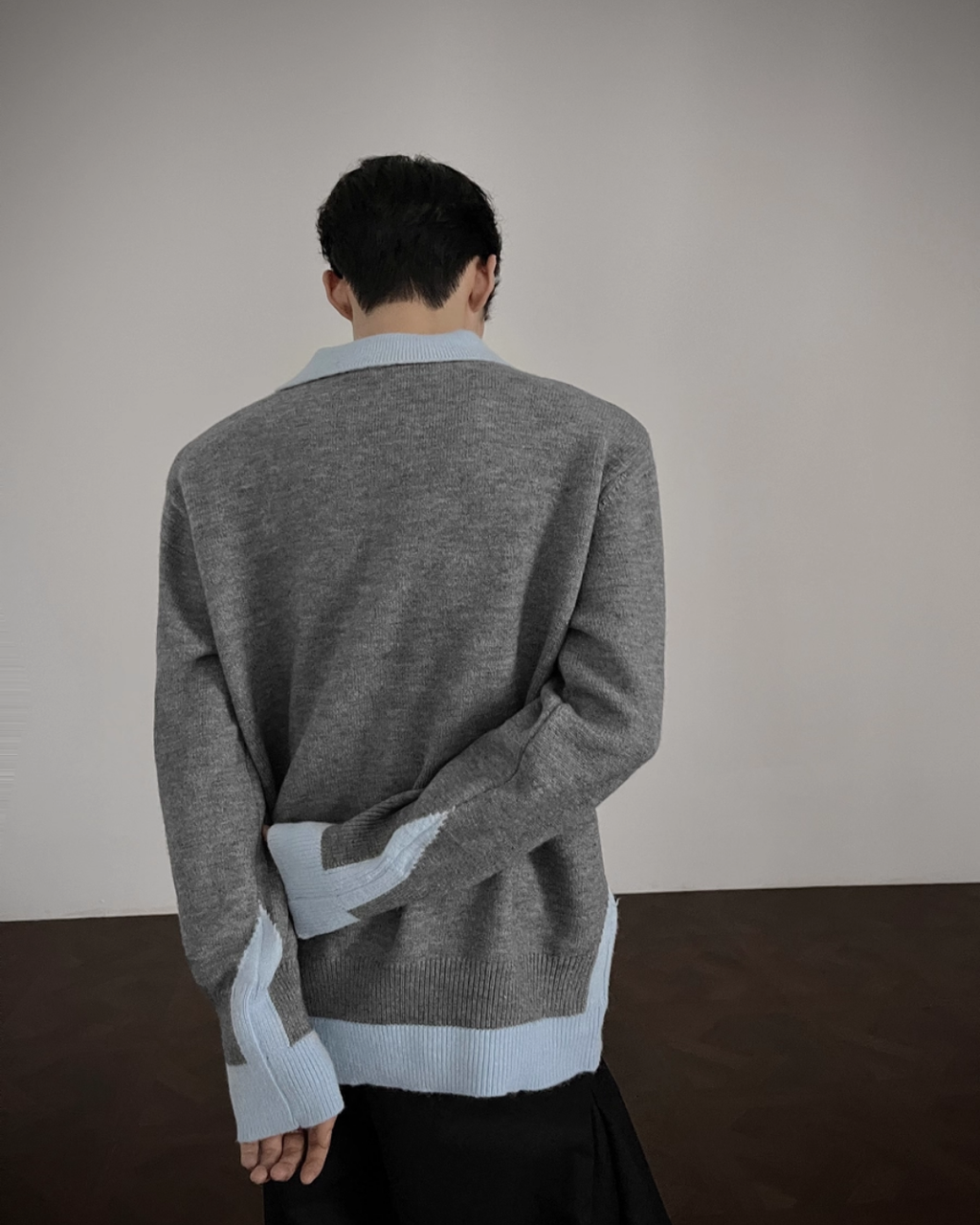 【1.2新作】バイカラーコリアンニットトップス mf3618【1.2新作】バイカラーコリアンニットトップス mf3618