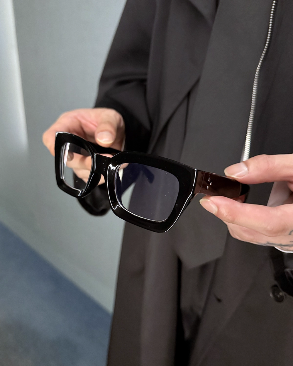 存在感のある太めライン×クリアレンズで、
