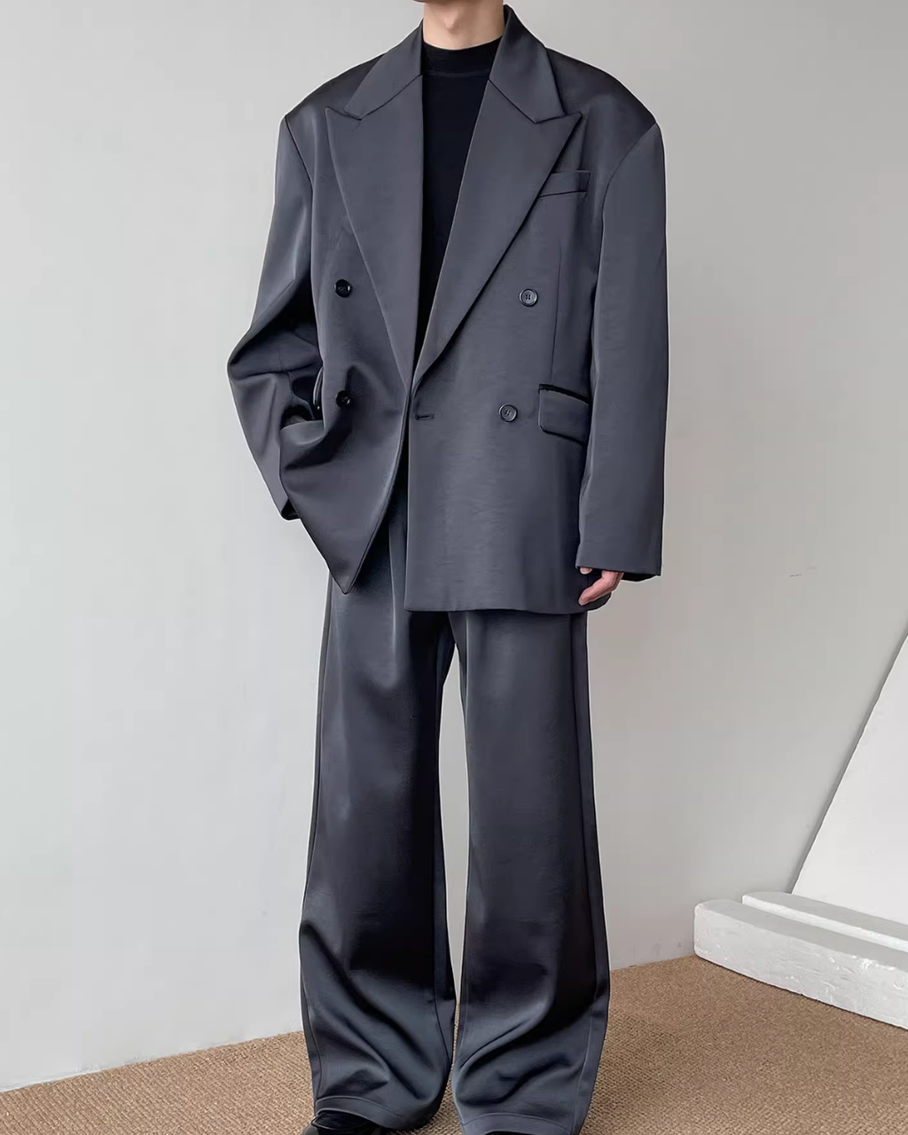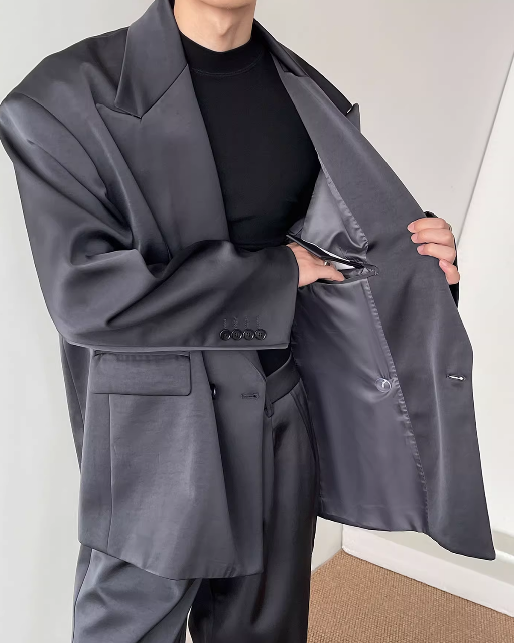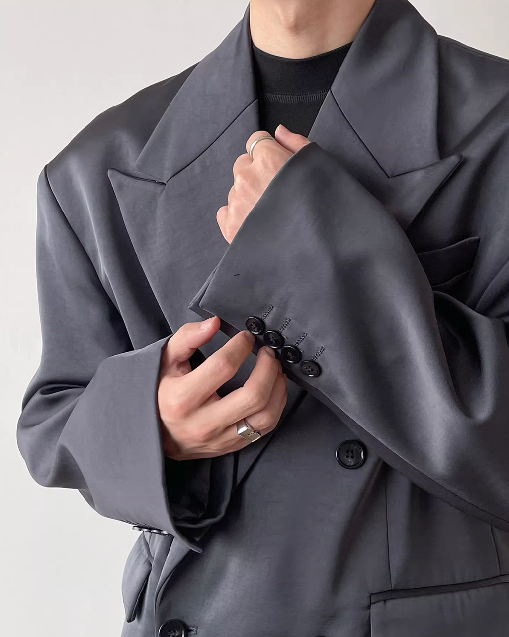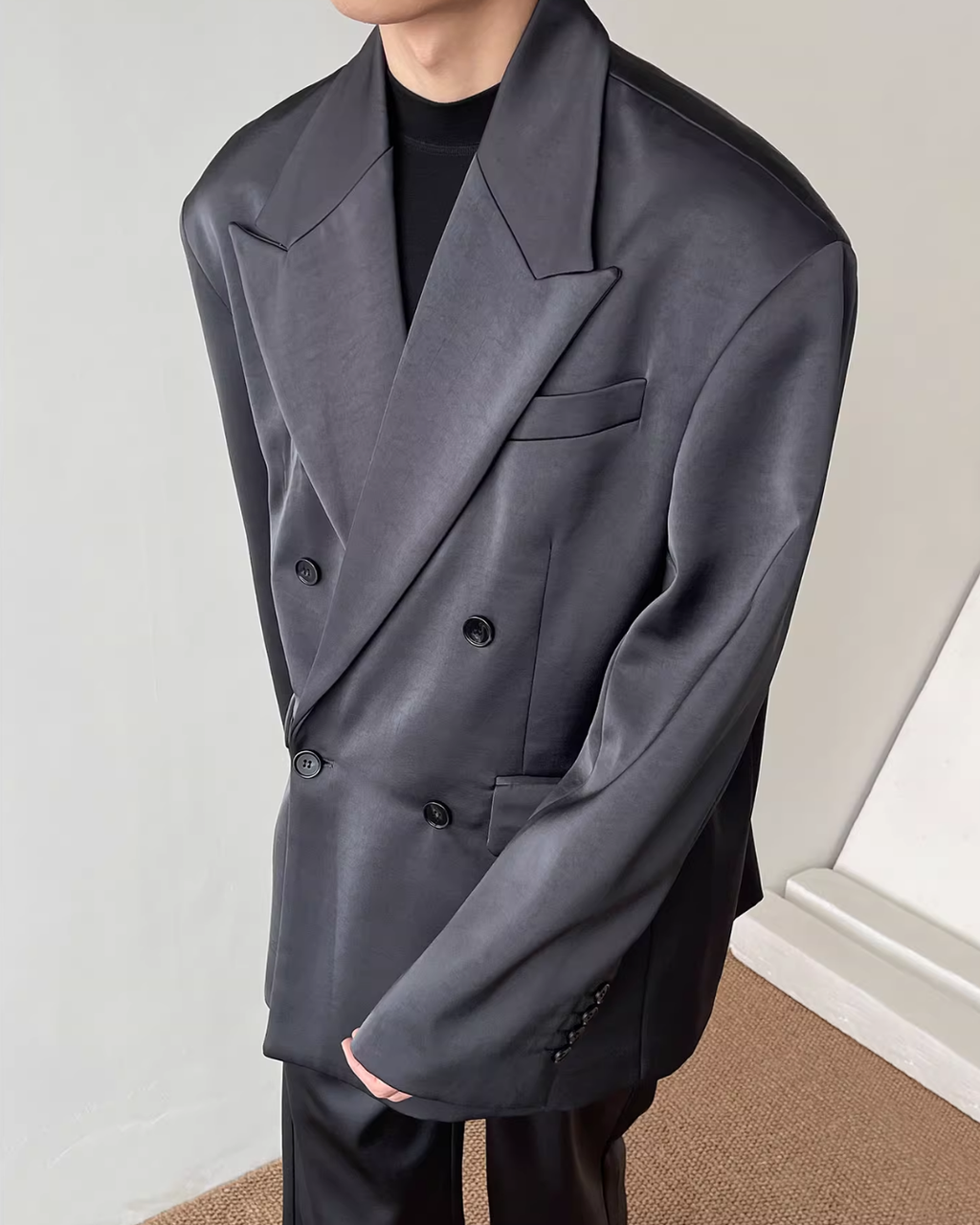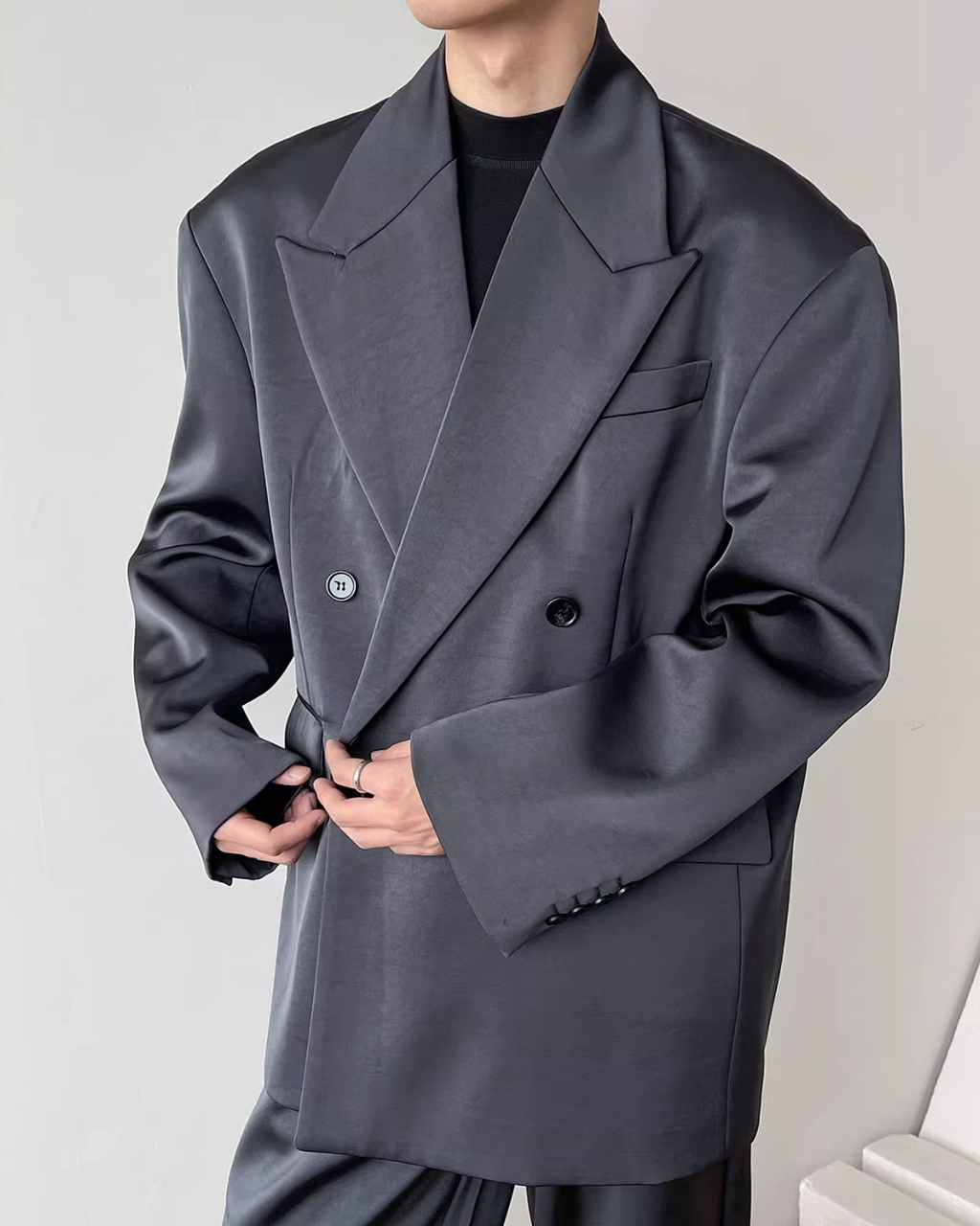【12.3新作】ダブルブレストルーズサテンジャケット mf3599【12.3新作】ダブルブレストルーズサテンジャケット mf3599
