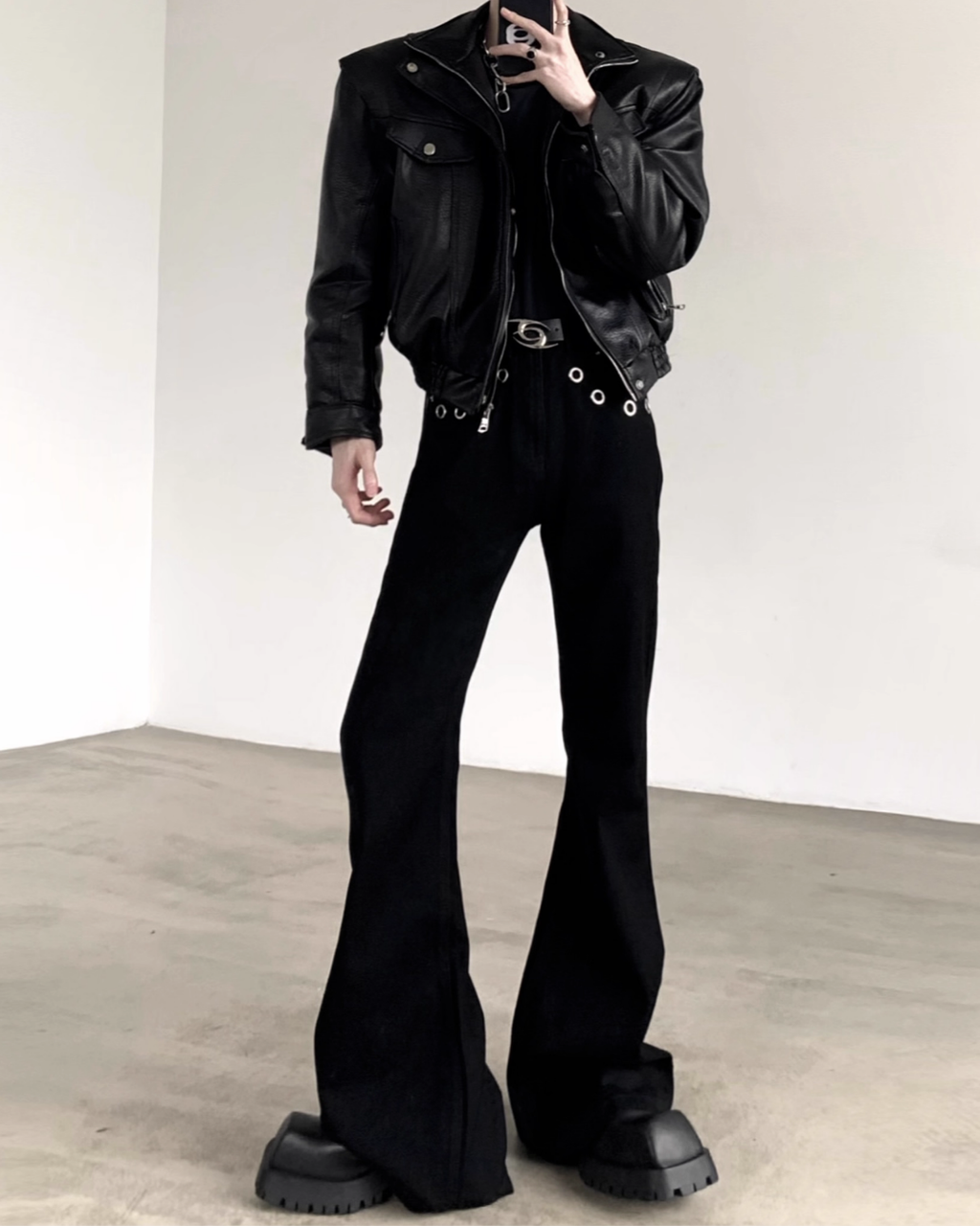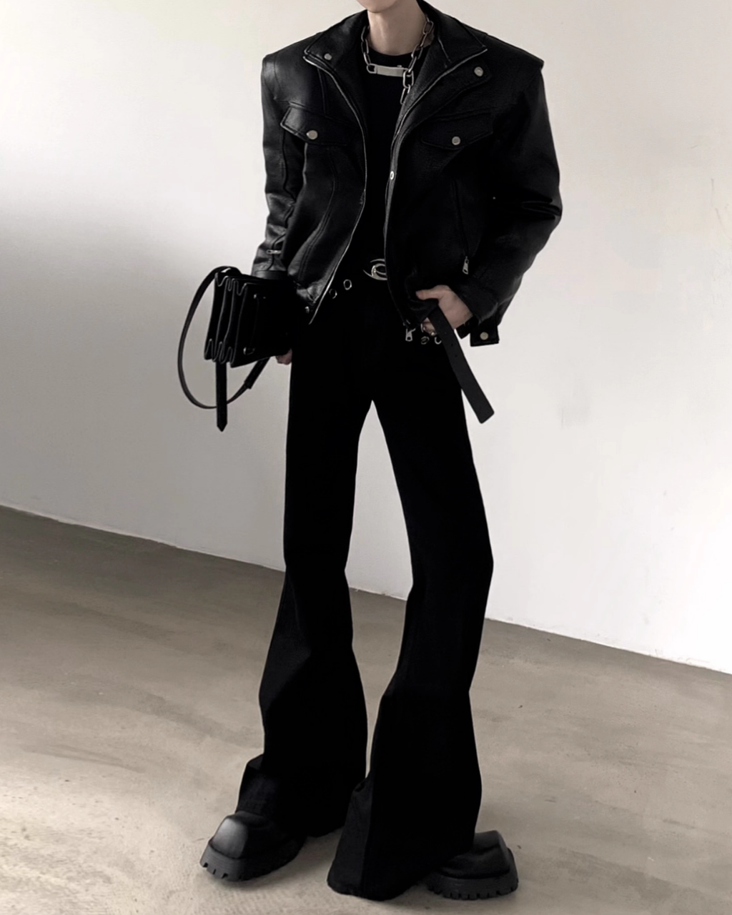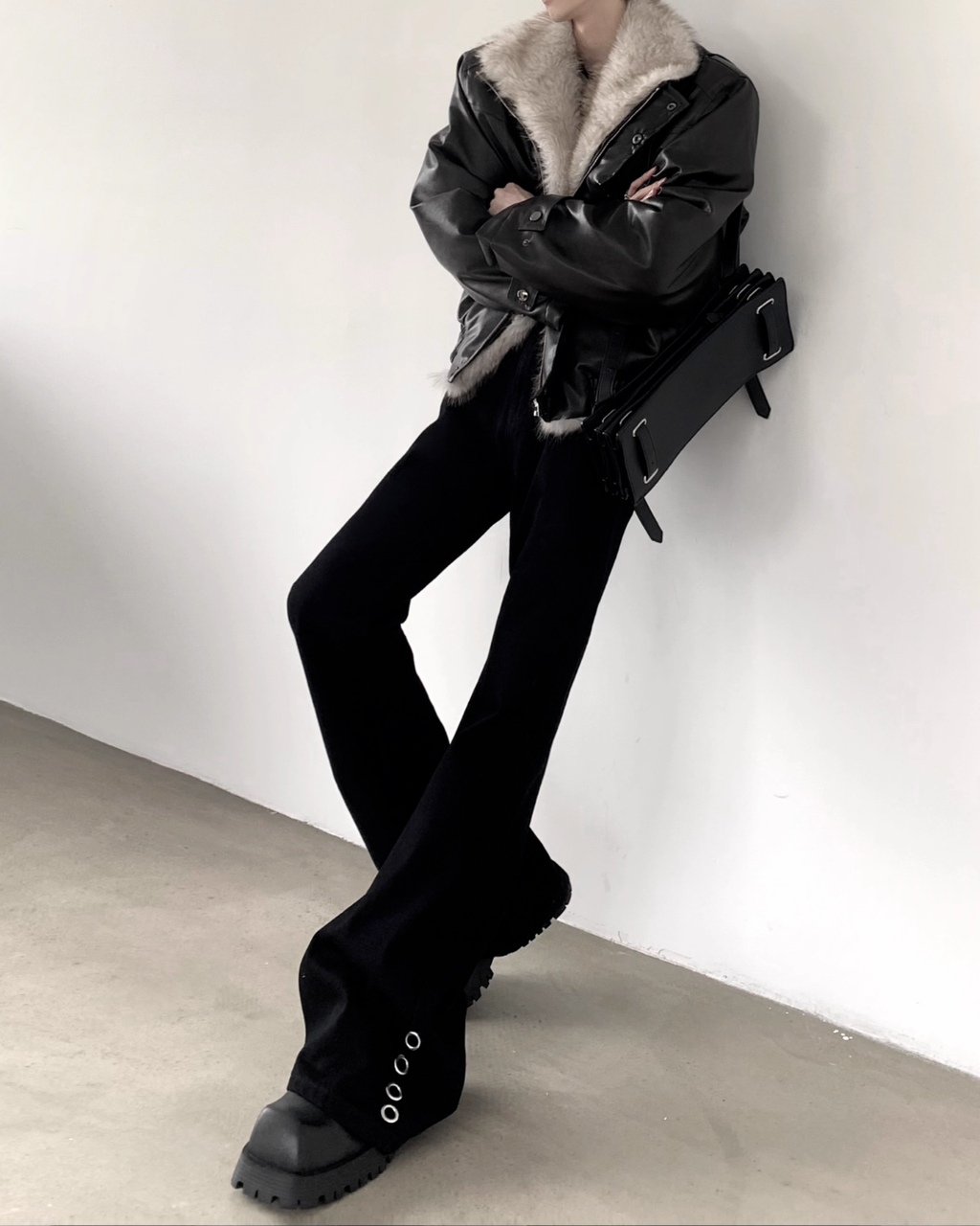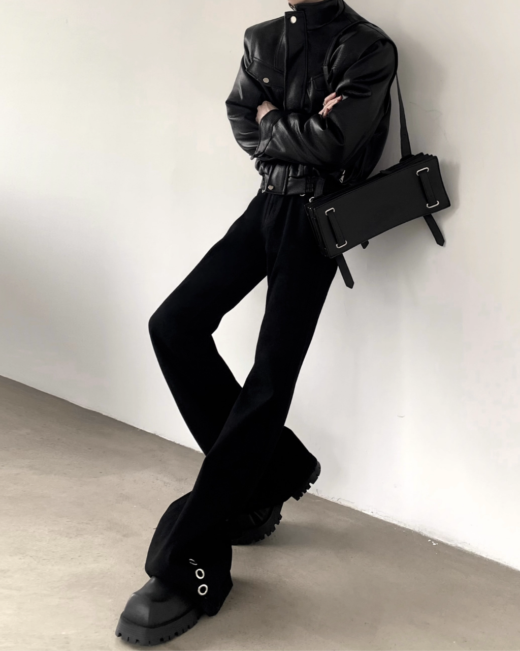 スタイル全体を縦長かつシャープに演出します。