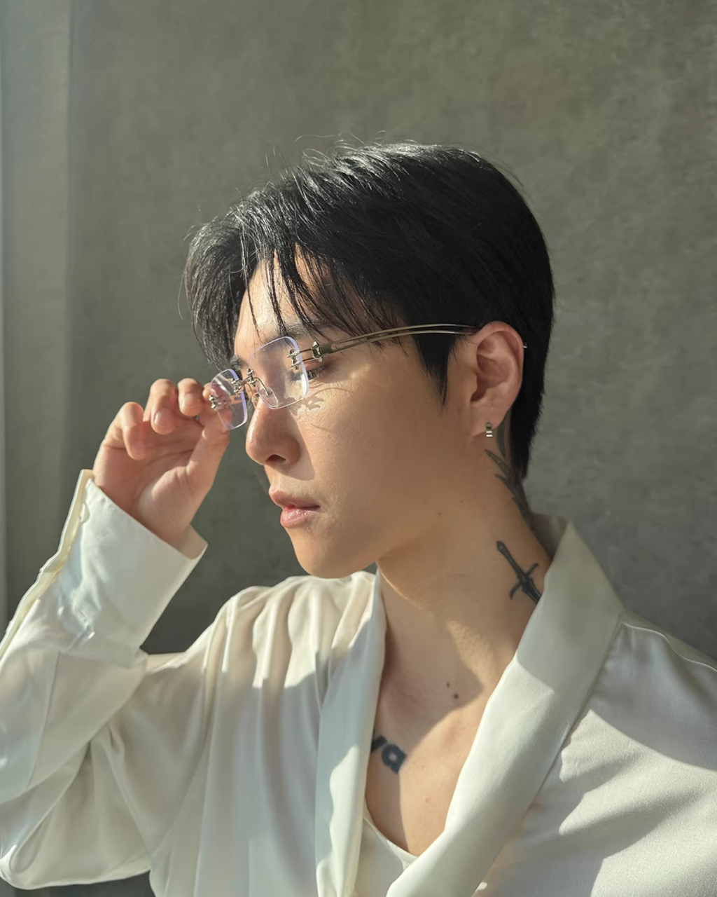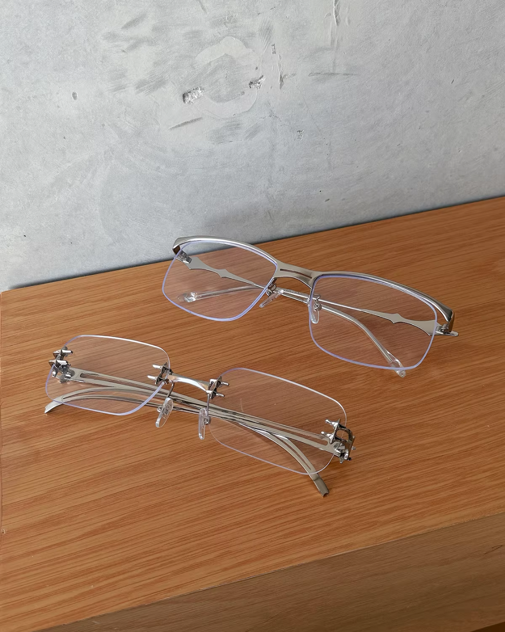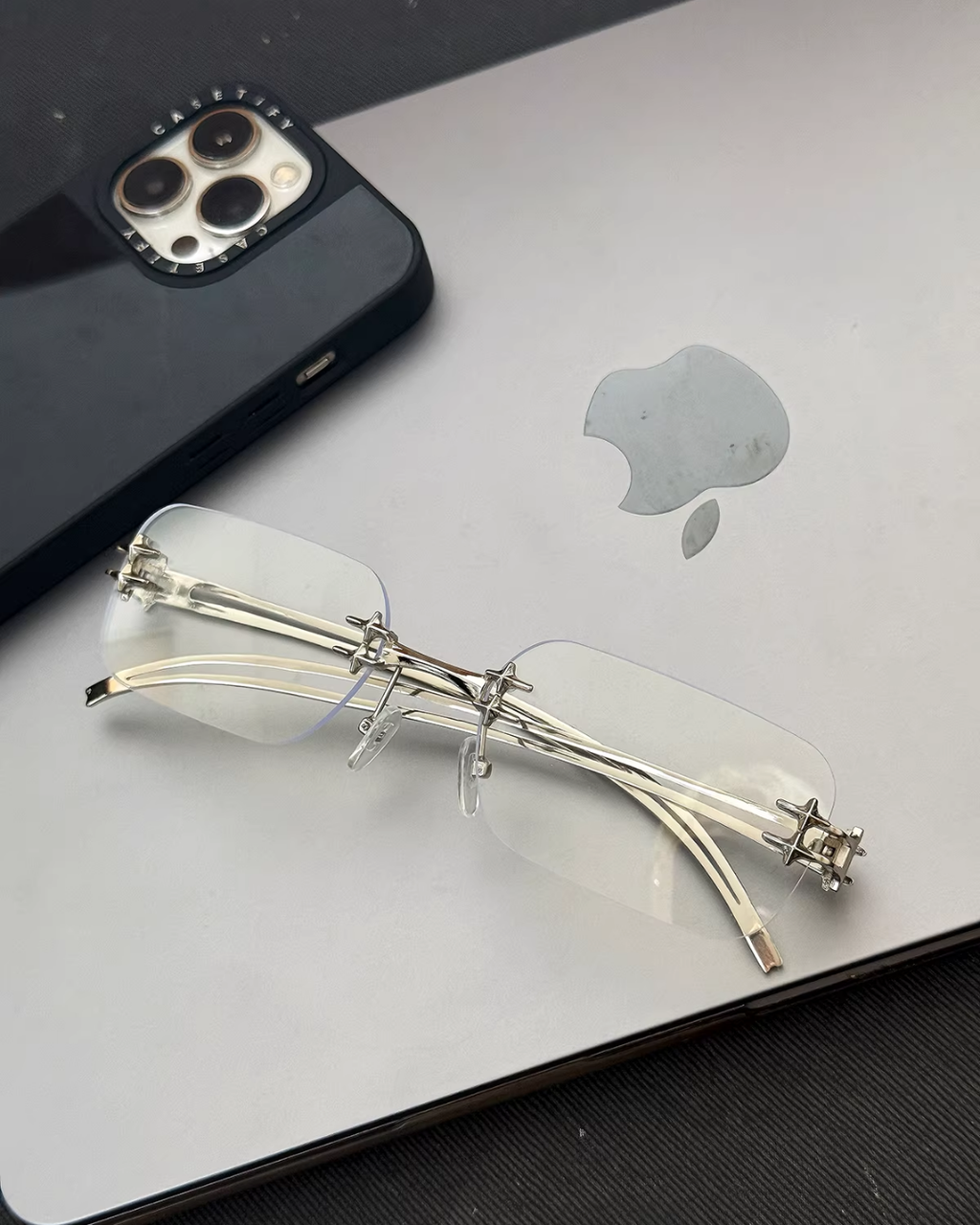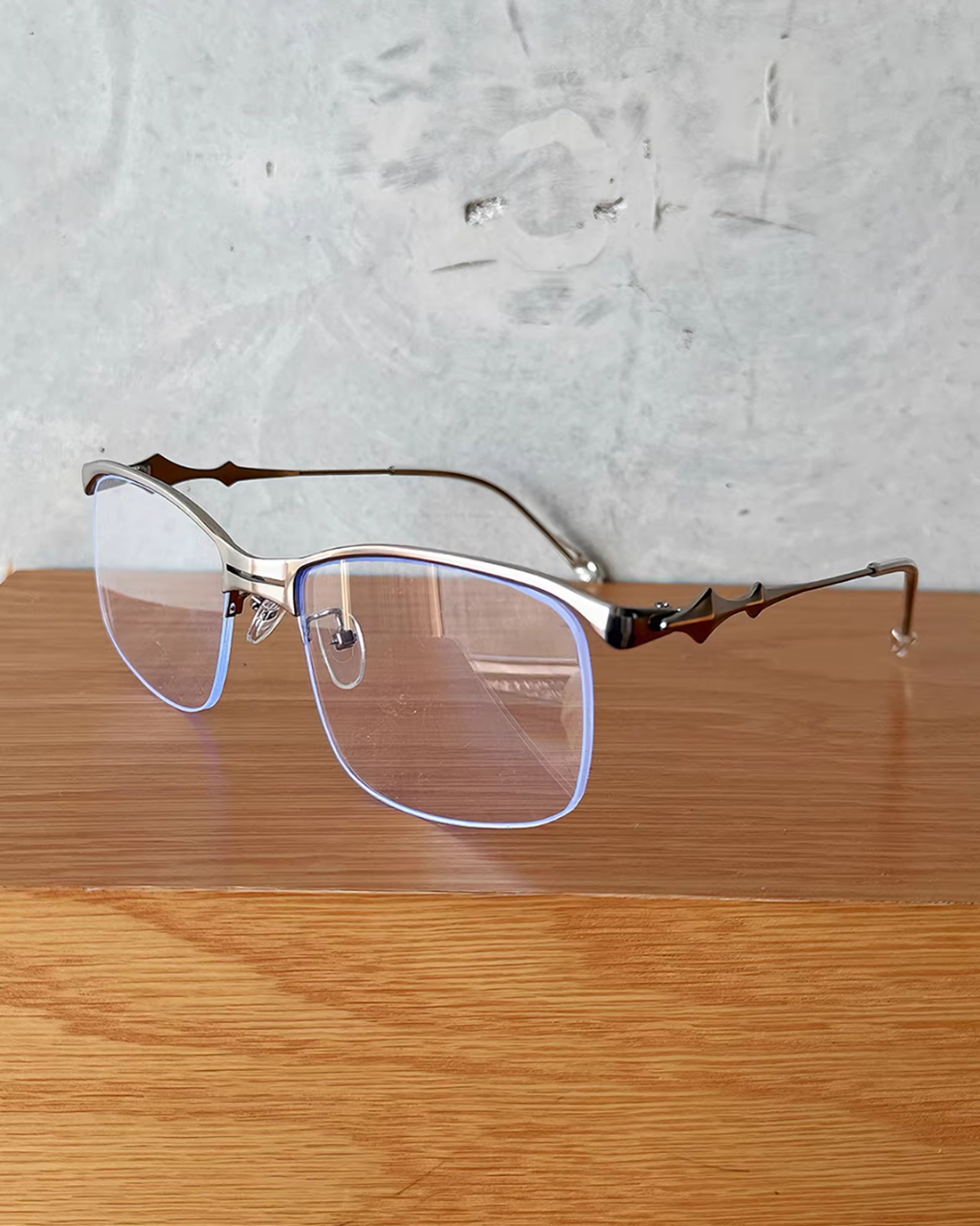 透き通るフレームにシルバーパーツを合わせた、