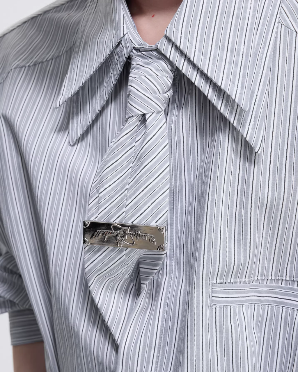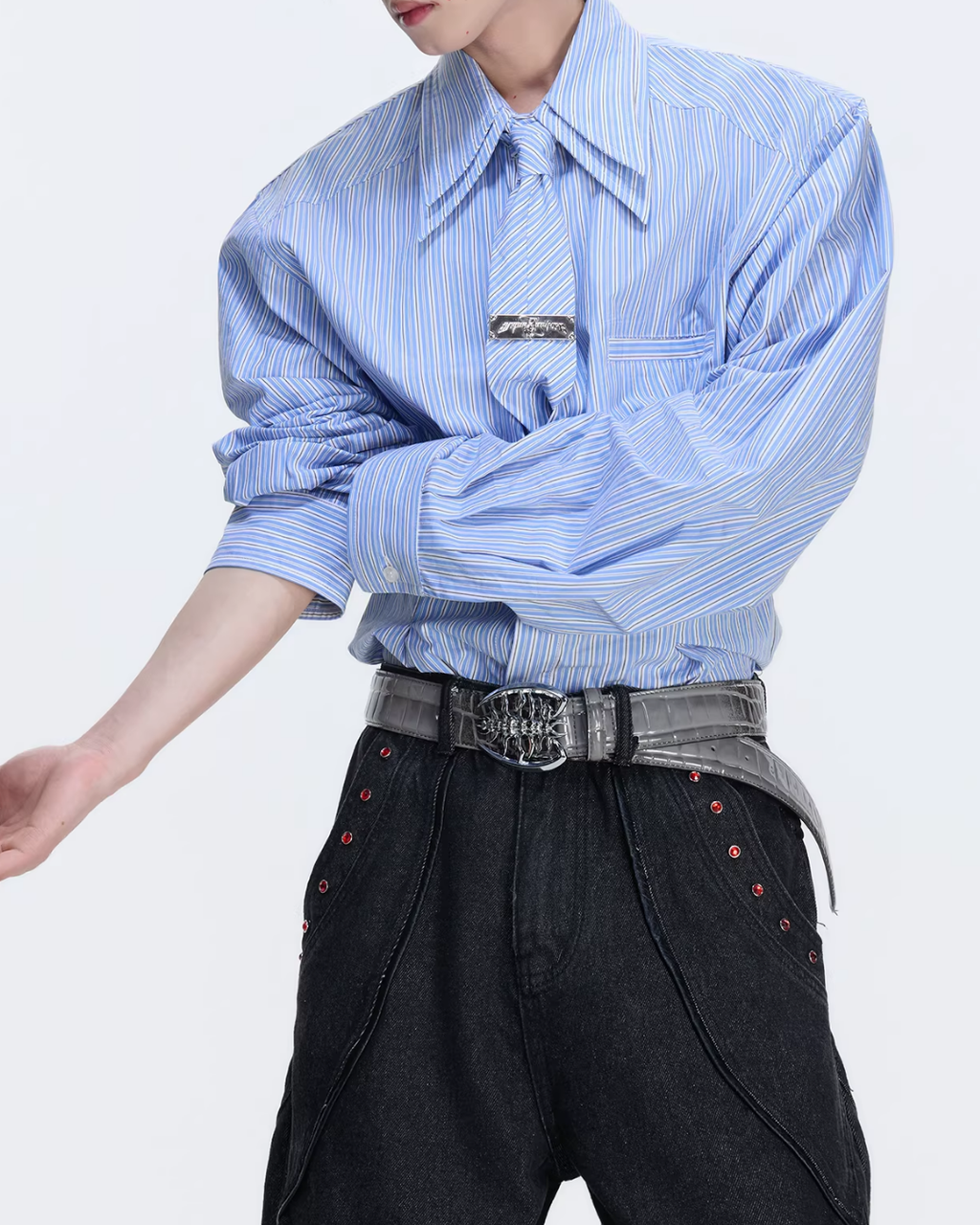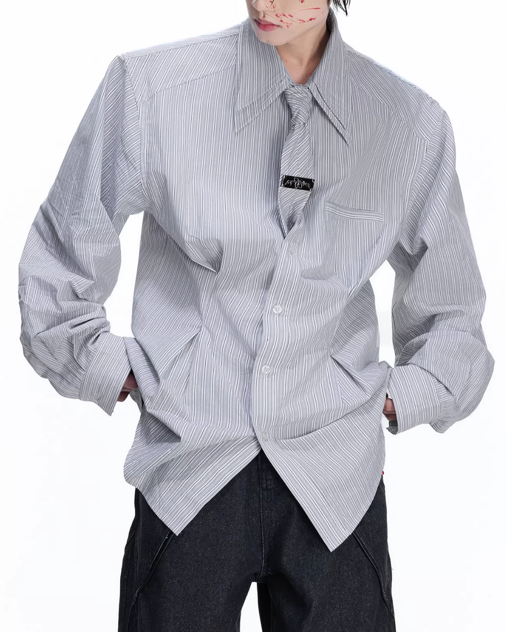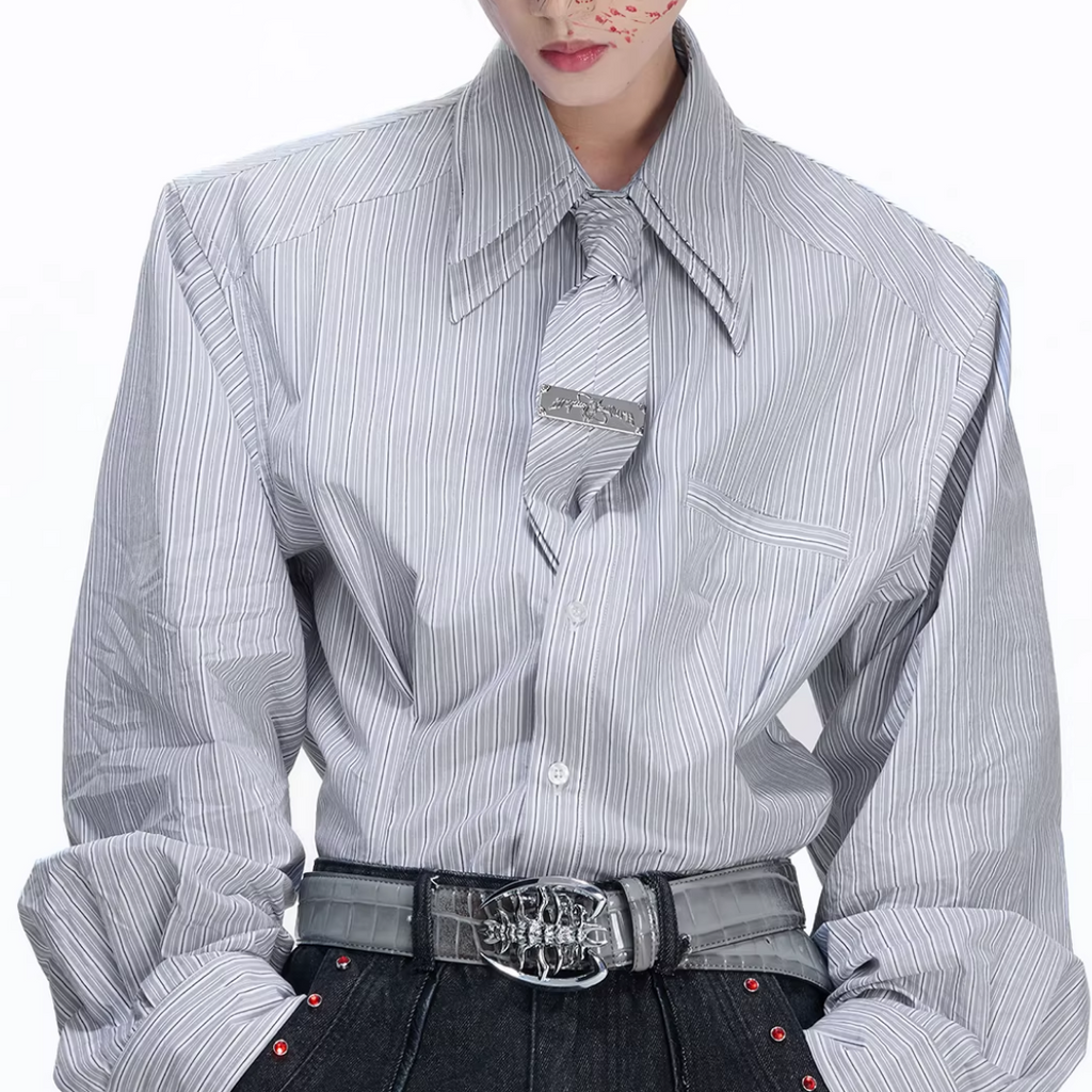 【1.9新作】ストライプタイデザインコリアンシャツ mf3627