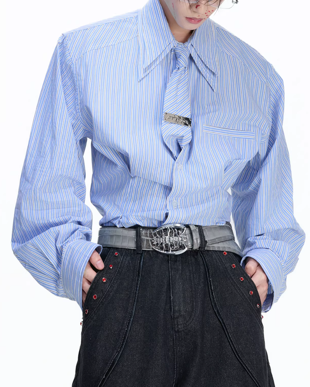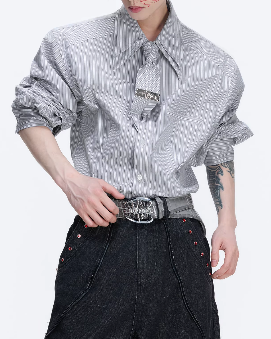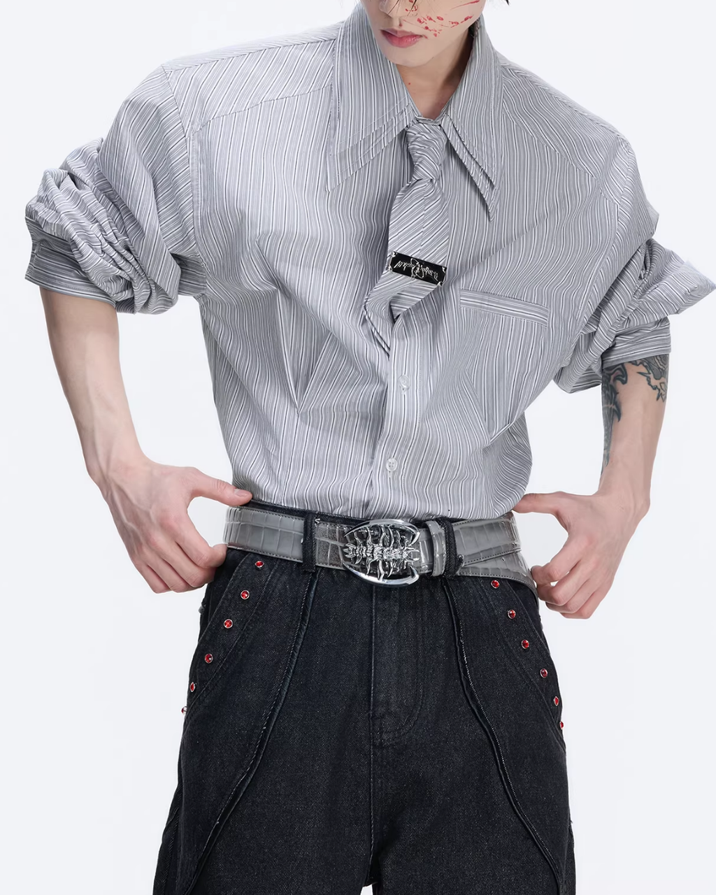 【1.9新作】ストライプタイデザインコリアンシャツ mf3627
