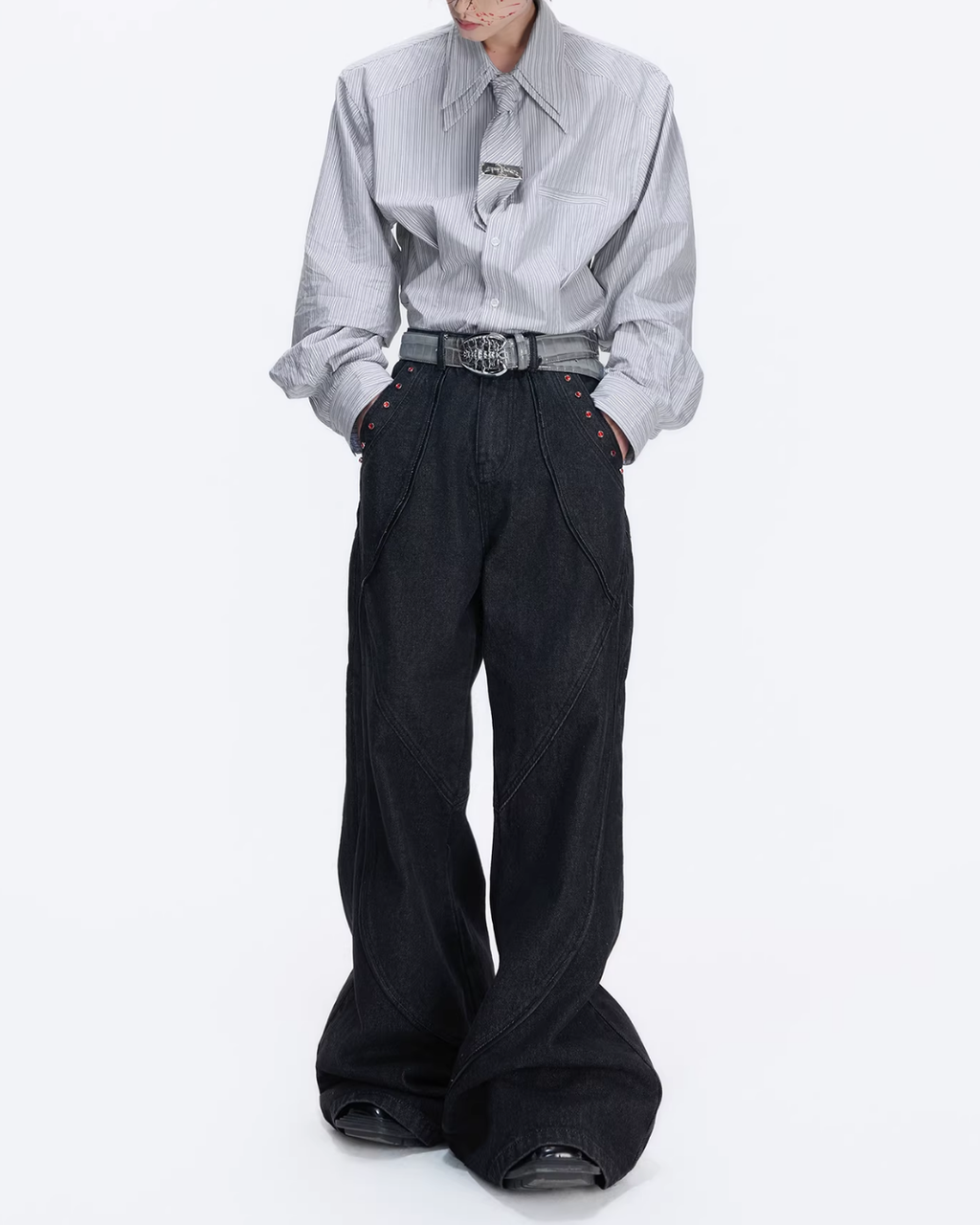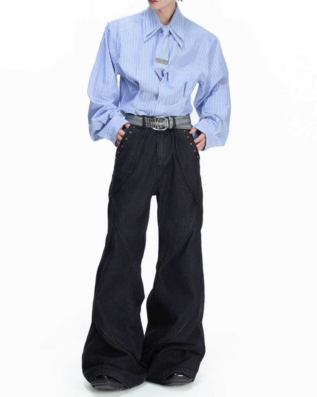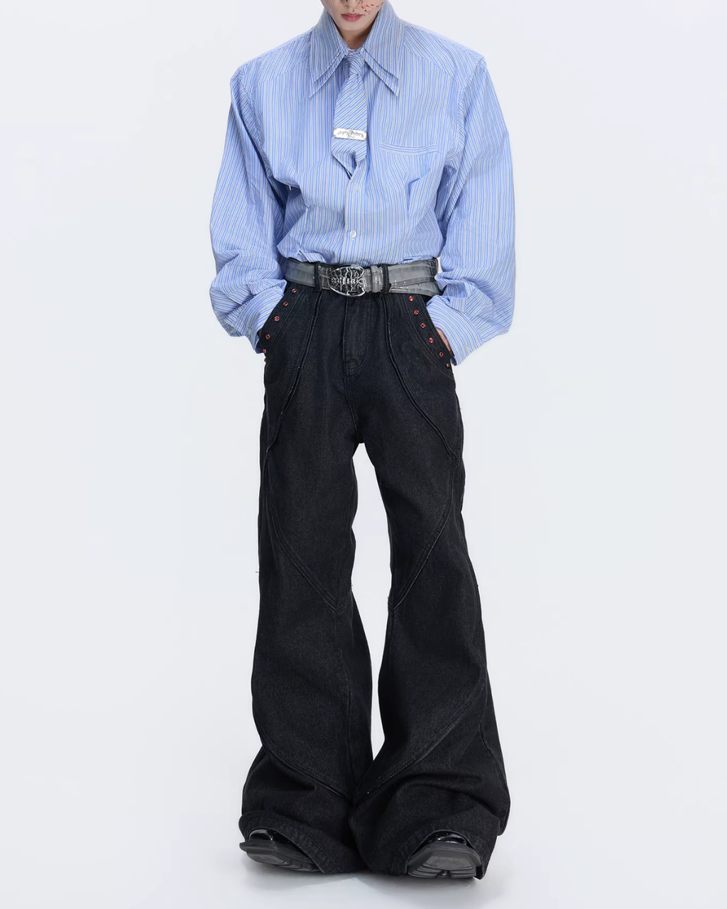 すっきりとした印象を与えるコリアンシャツ。