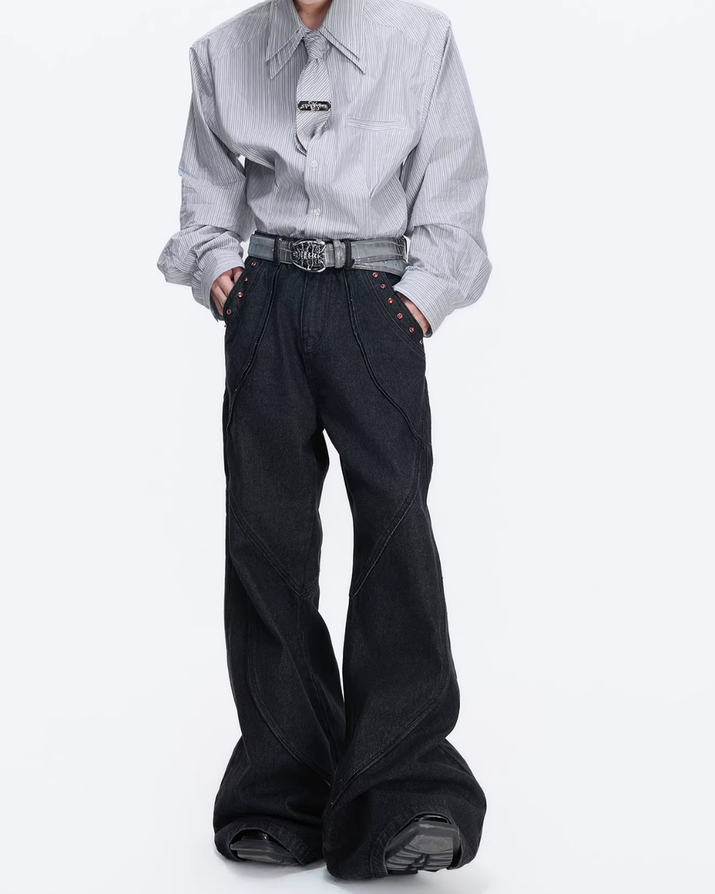 スリムバックルプリーツフレアスラックス mf3632スリムバックルプリーツフレアスラックス mf3632