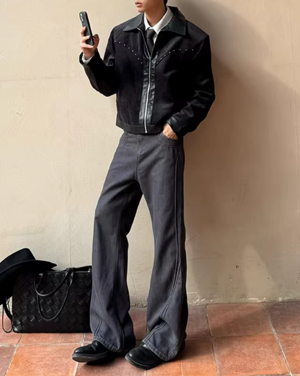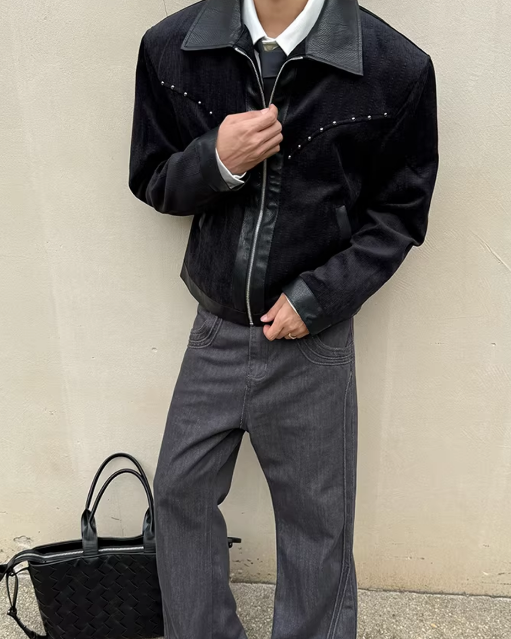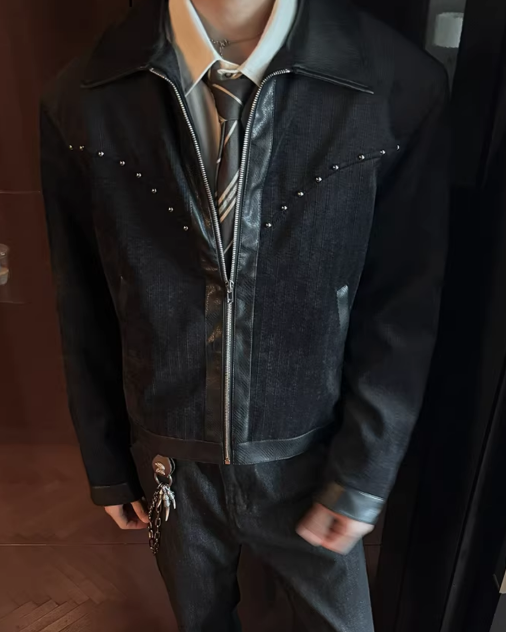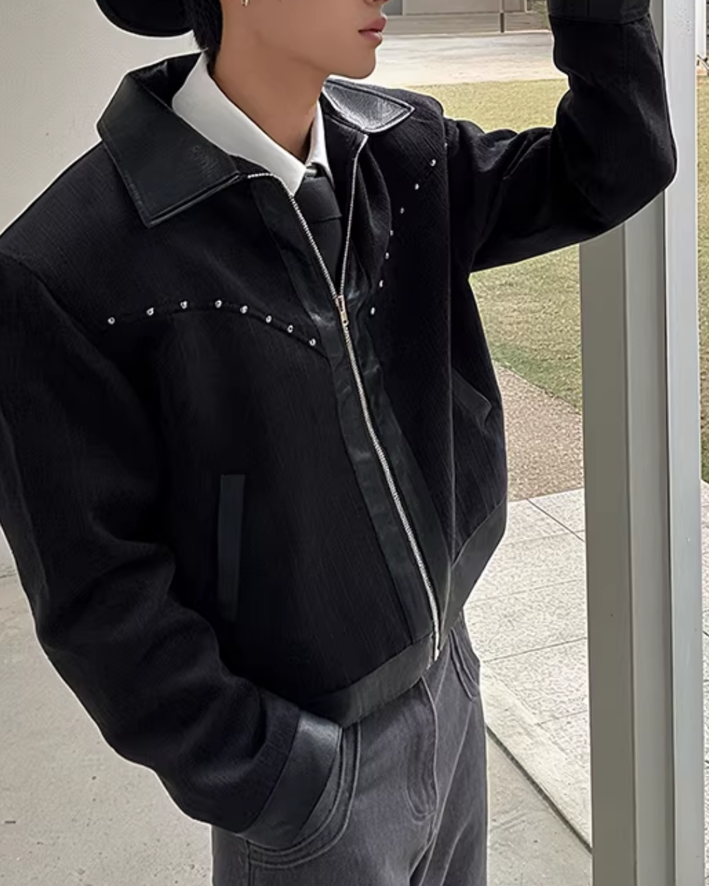 ショートラペルモードレザージャケット mf3659ショートラペルモードレザージャケット mf3659