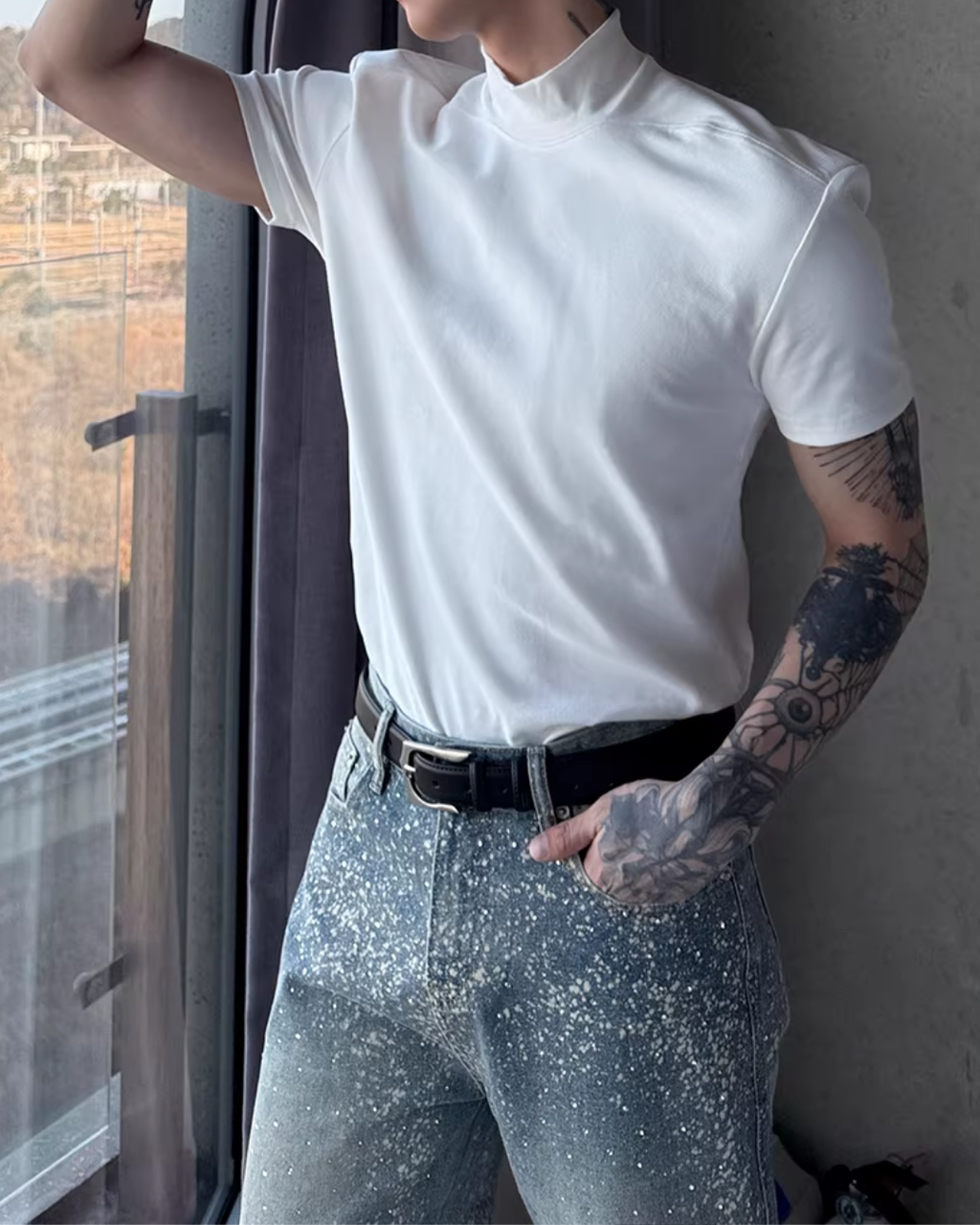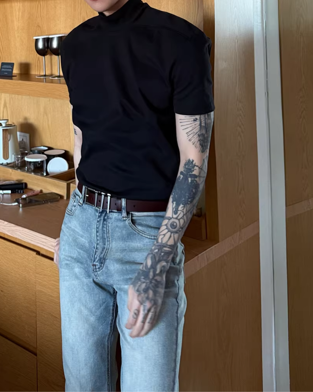 모드 하이넥 블로킹 티셔츠 mf3684 모드 하이넥 블로킹 티셔츠 mf3684