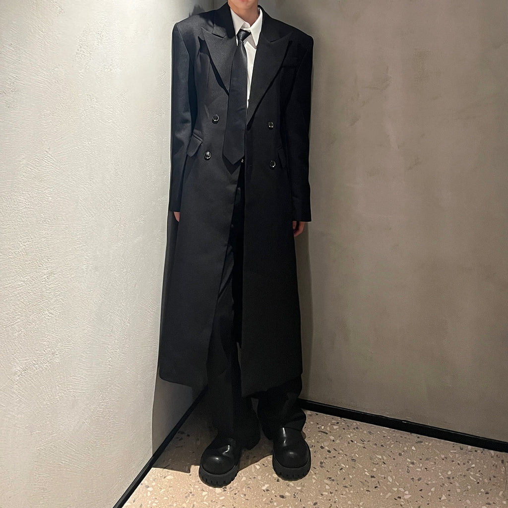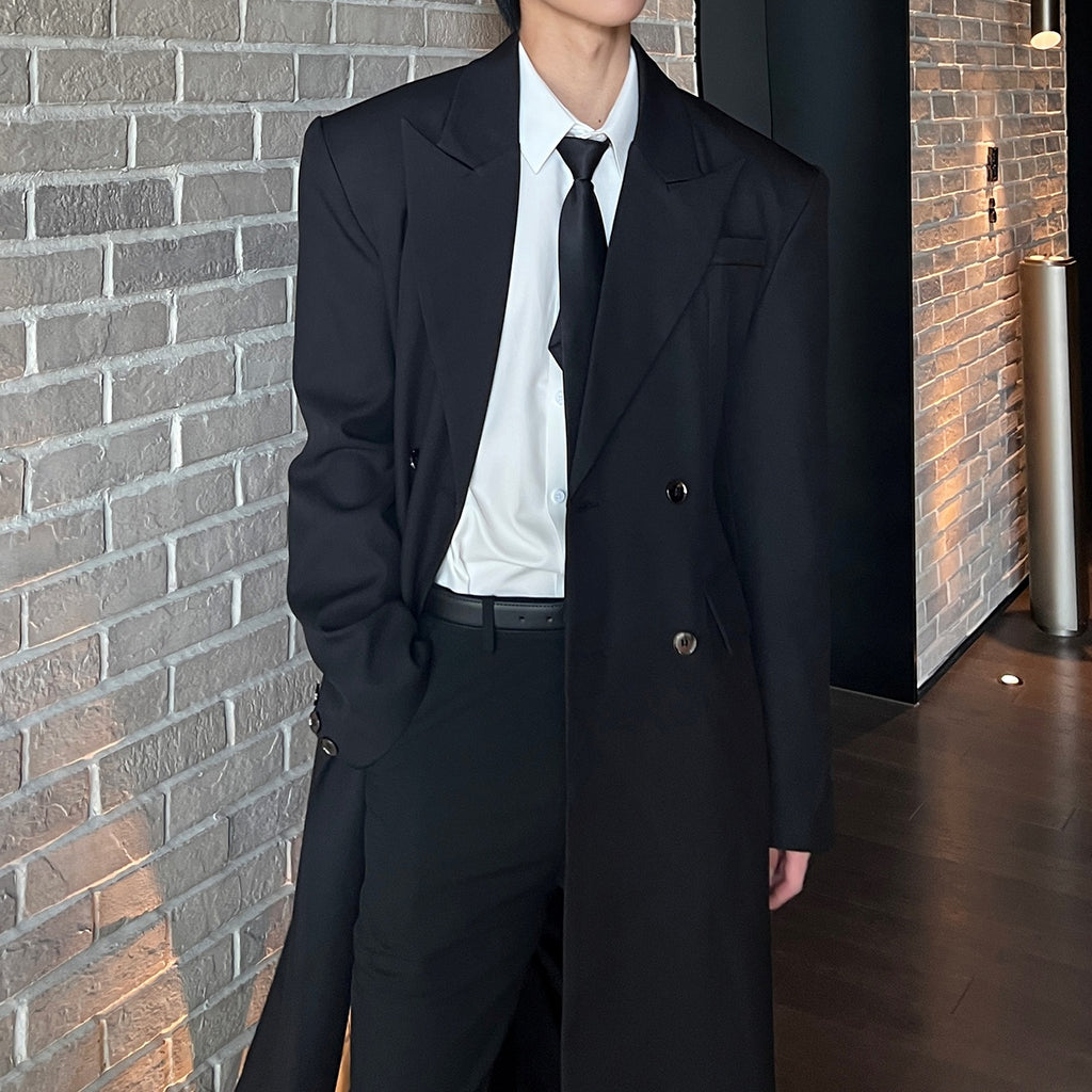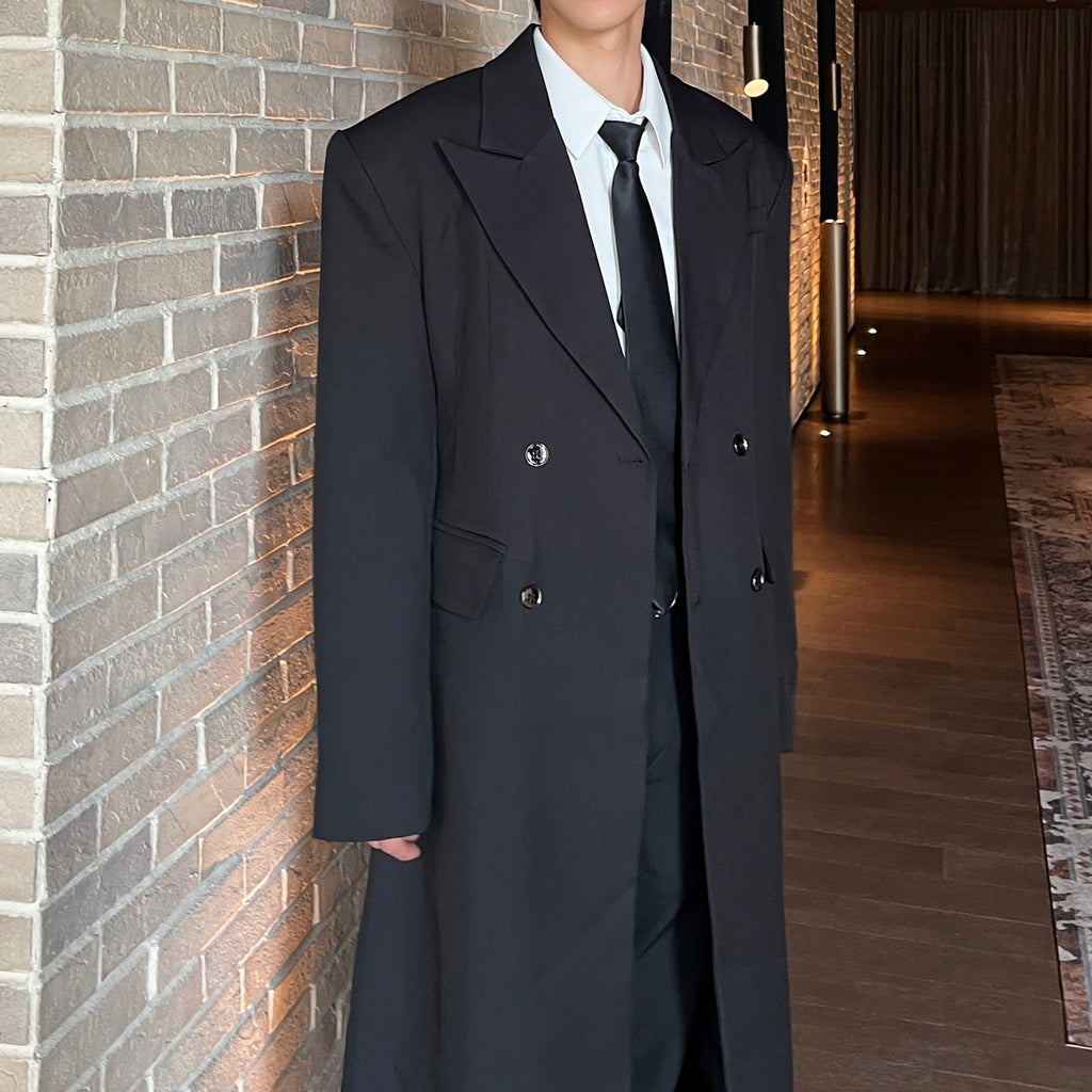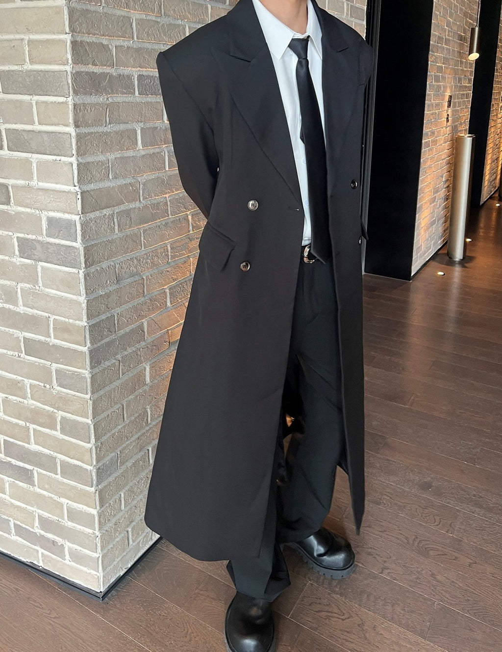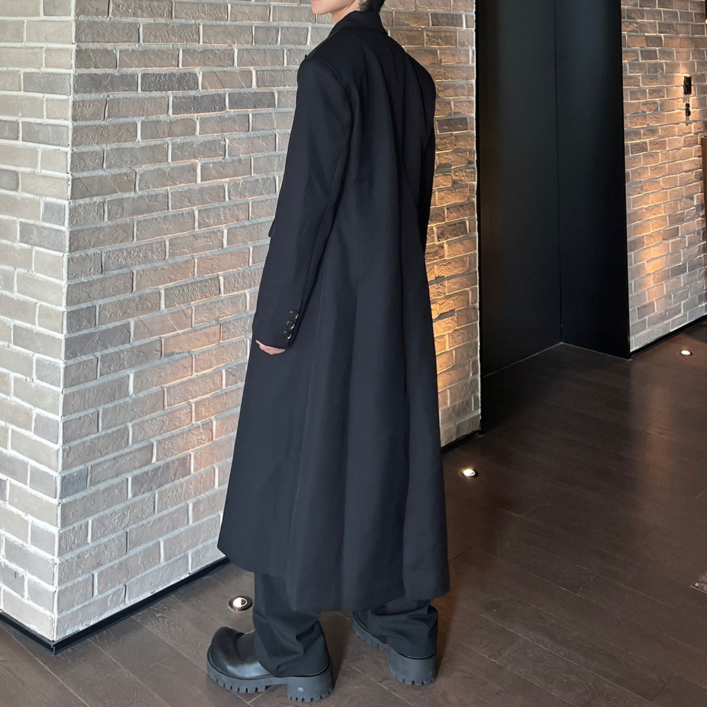モードブラックロングコート mf2954