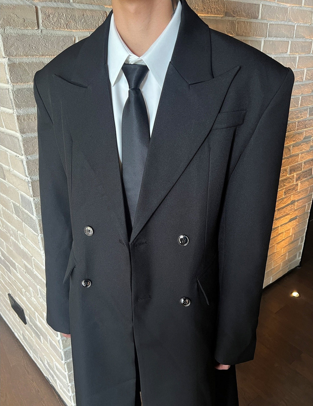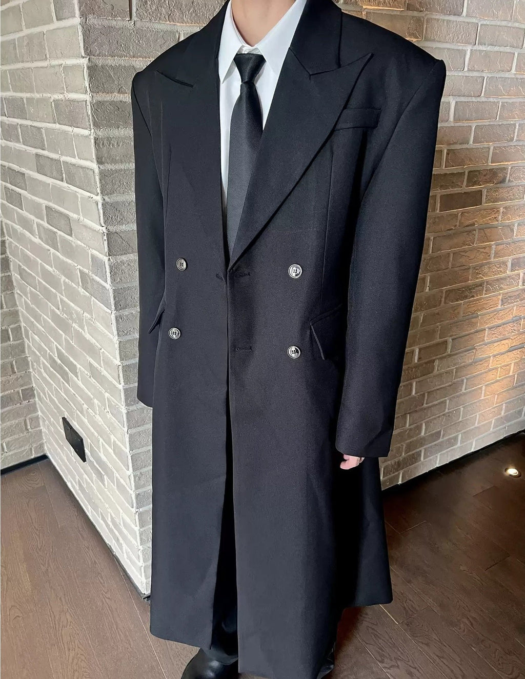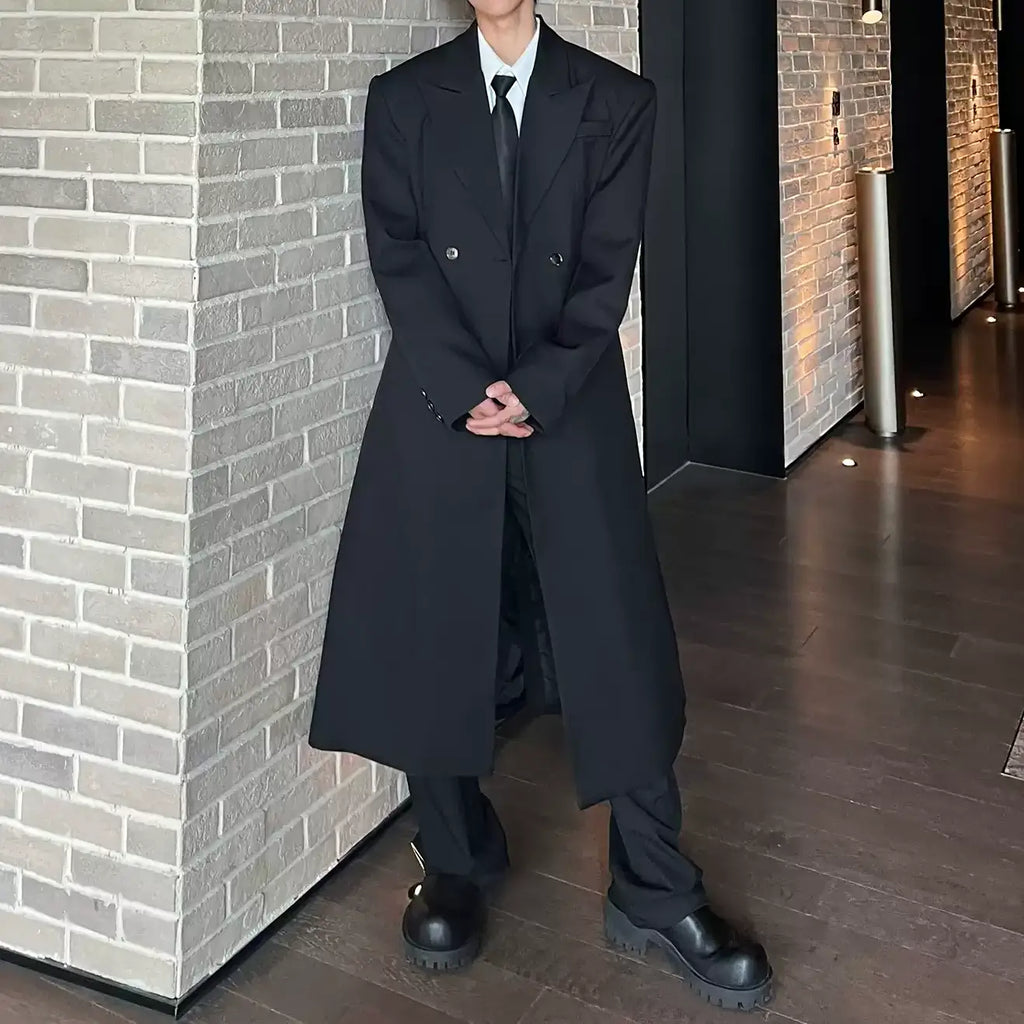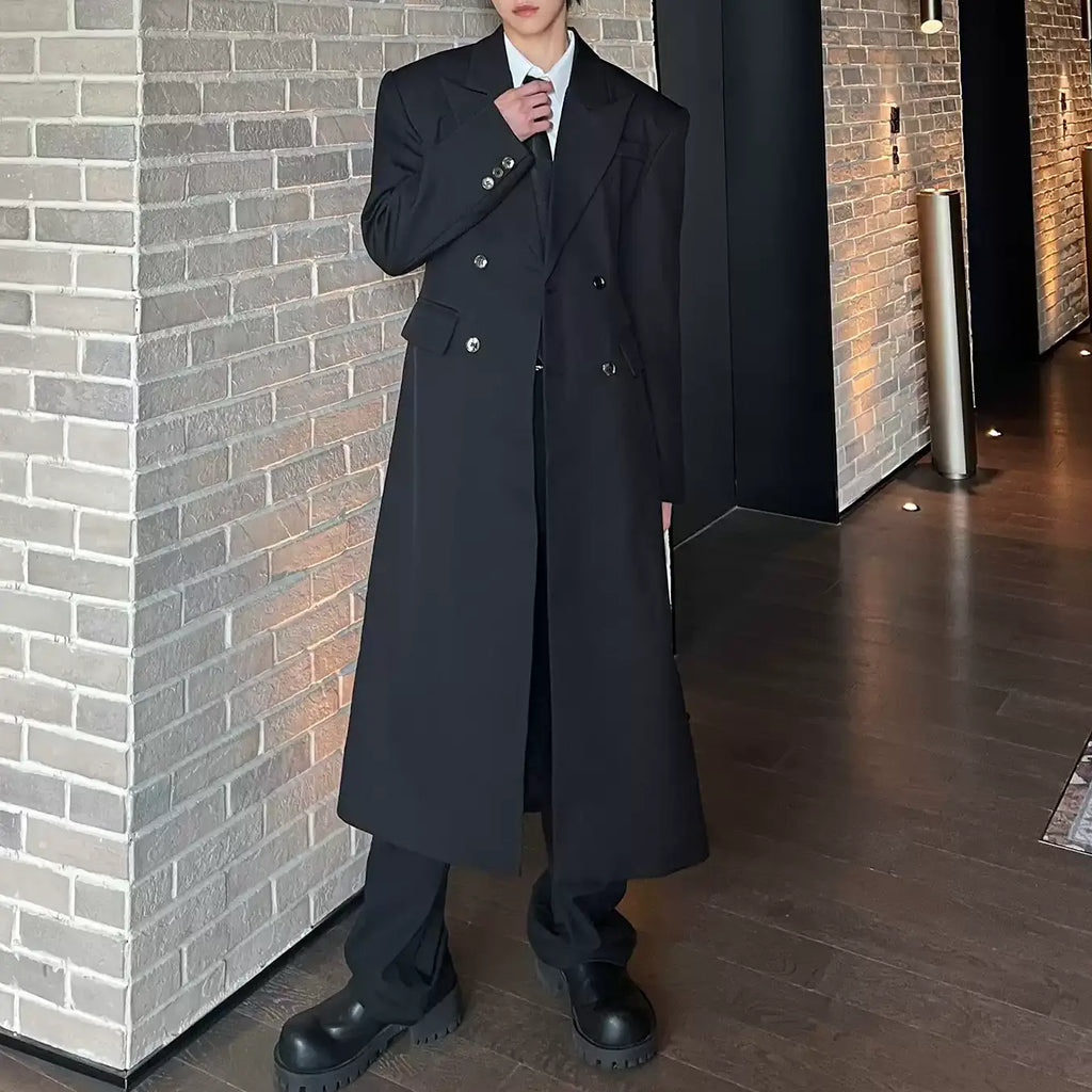 モードブラックロングコート mf2954