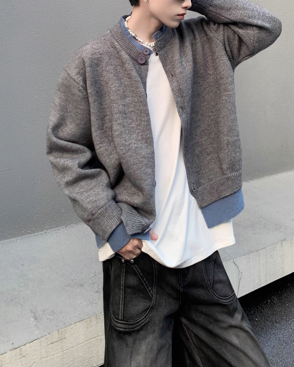 【11.3新作】バイカラーコリアンカーディガン mf3563【11.3新作】バイカラーコリアンカーディガン mf3563